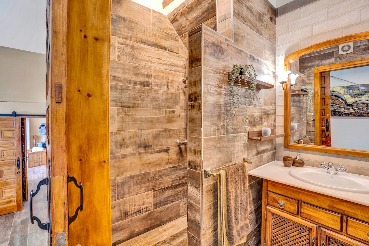 Schon beim Betreten des Anwesens wird man von einem Gefühl der Ruhe umhüllt, das es zu einer wahren Oase des Friedens macht. Die Finca verfügt über sieben Schlafzimmer, darunter ein separates 2-Schlafzimmer-Apartment mit eigenem Bad und Küche. Zusätzlich gibt es ein Büro und ein Ankleidezimmer, so dass ausreichend Platz für Arbeit und persönliche Bedürfnisse vorhanden ist. Die Immobilie verfügt über insgesamt fünf Badezimmer und zwei Gäste-WCs, die sowohl den Bewohnern als auch den Gästen Komfort bieten.