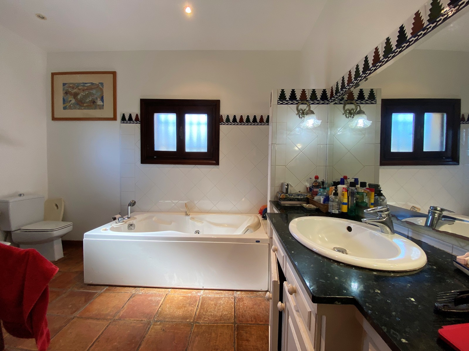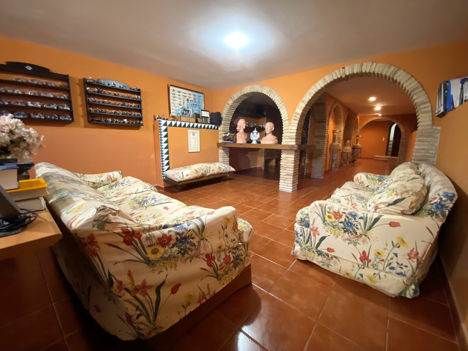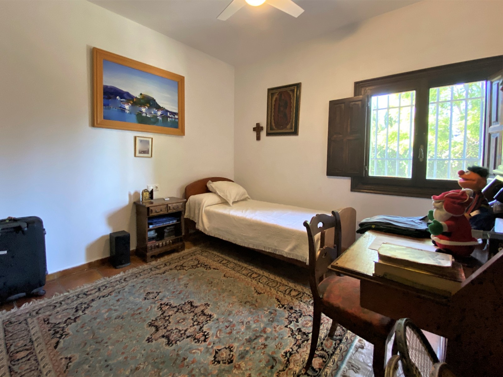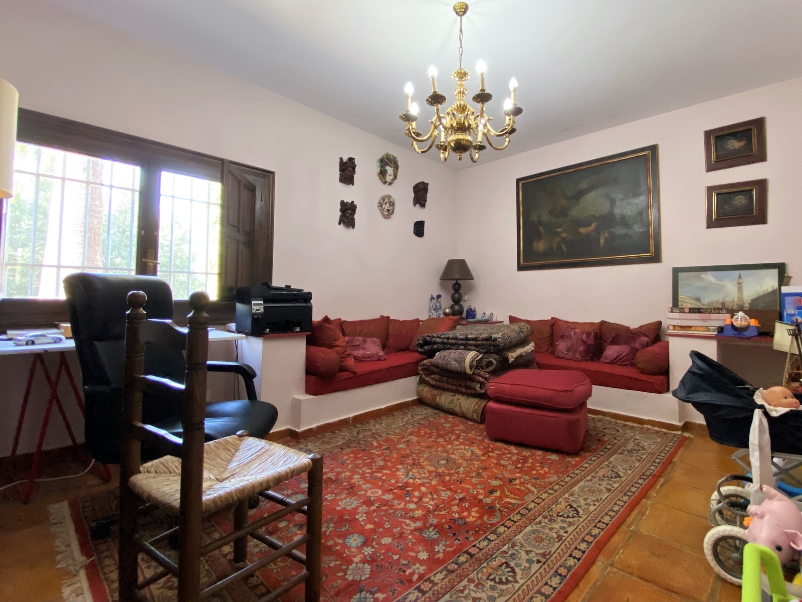 Terracotta-Böden einheitlich im gesamten Haus, Holzfenster mit Sicherheitsgittern, warm/ kalt Klimaanlage, Kamin im Wohnzimmer, diverse Einbauschränke, separates Dachgeschoss-Apartment und Wohnraum für Hausangestellte,stilvoll spanische Einbau-Küche, Keller mit Sauna und Weinkeller, großer Pool mit überdachten BBQ, Doppelgarage und Doppelcarport, diverse Terrassen, Sat-TV, Internet, Telefon, etc.
