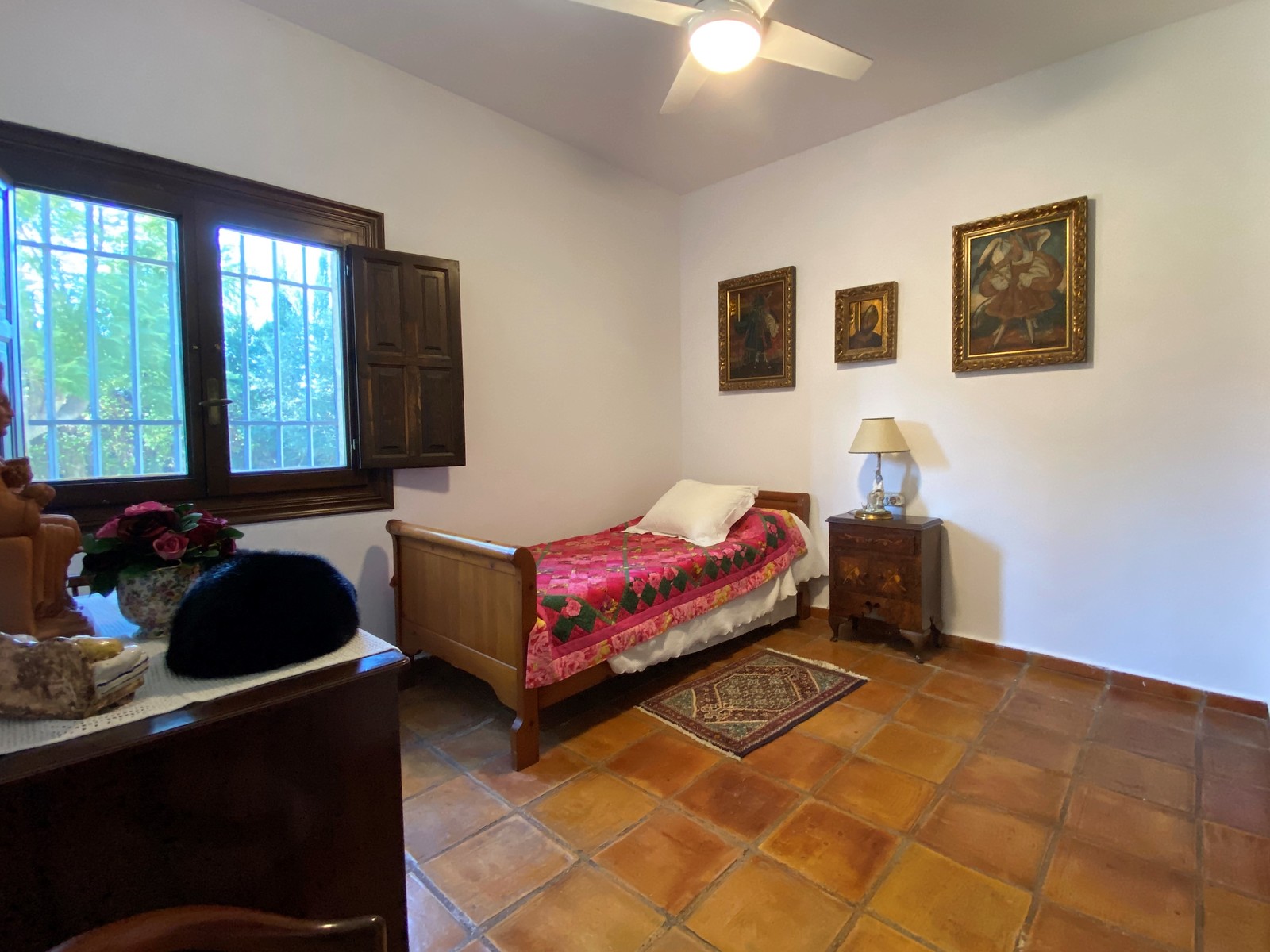 Über eine Außentreppe gelangt man zu einem gesonderten Appartement im Dachgeschoss der Villa. Dieses wird derzeit als Abstellraum benutzt, verfügt aber über ein eigenes Badezimmer und kann deshalb auch als Gästewohnung genutzt werden. Eine Klimaanlage ist vorhanden. Hier gibt es eine große Terrasse, von der aus man einen tollen Blick auf das gesamte Anwesen und die umgebenen Palmenplantage hat.