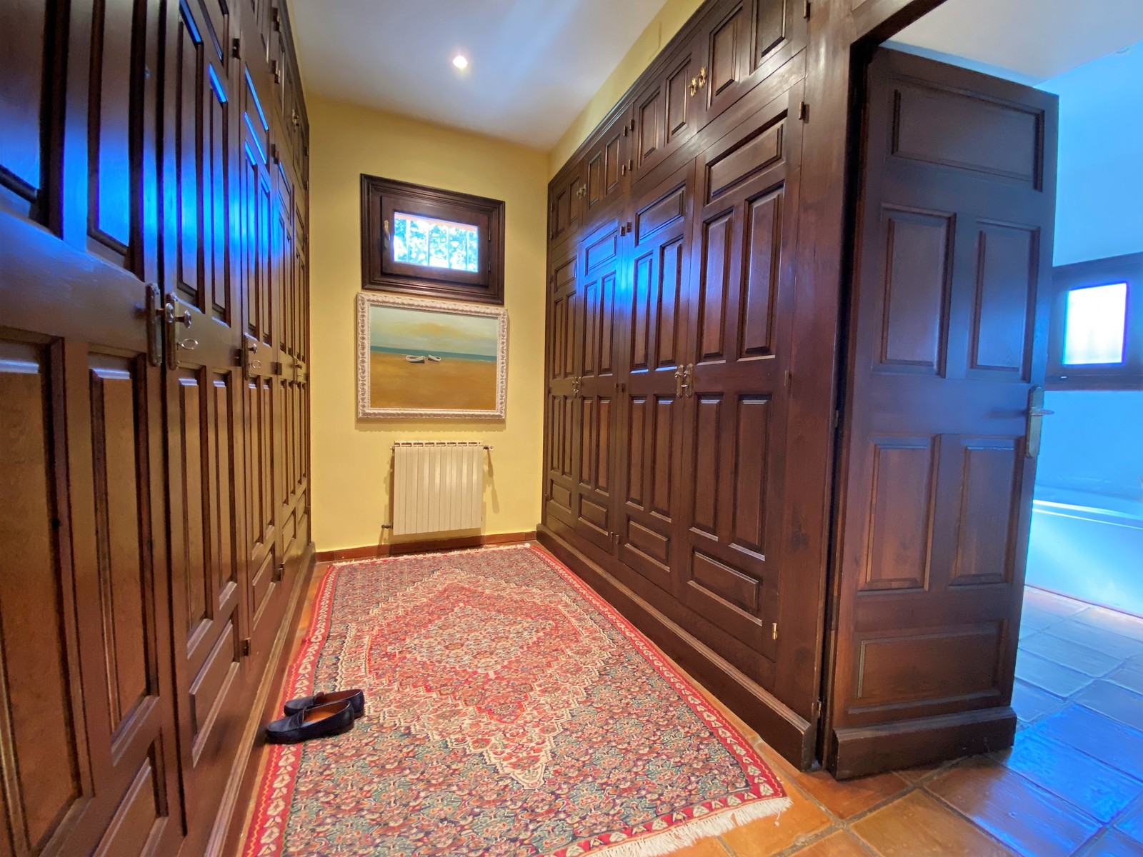 Rechts vom Eingangsbereich befindet sich der Schlafbereich: Alle Schlafzimmer sind großzügig geschnitten und haben zum Teil hochwertige Einbauschränke. Zwei der Schlafzimmer sind über das gemeinsame Badezimmer miteinander verbunden. Das Hauptschlafzimmer mit eigenem Bad-en-Suite verfügt über ein Ankleidezimmer mit ausreichend Schrankflächen. Zwei weitere Schlafzimmer sind durch ein Wannenbad voneinander getrennt und allen Bädern gemein ist, dass diese modern, hell und freundlich gestaltet wurden.