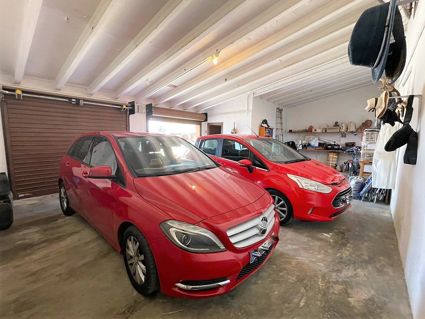 Die Garage mit automatischen Tor bietet Platz für zwei Autos und gleichzeitig Stellfläche für 4 Motorräder. Von dort aus hat man direkten Zugang zum Haus. Zusätzlich finden Sie einen Doppelcarport für weiteren Fuhrpark direkt neben dem Eingangstor.