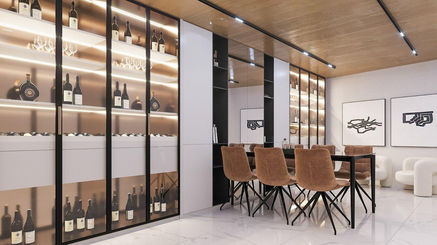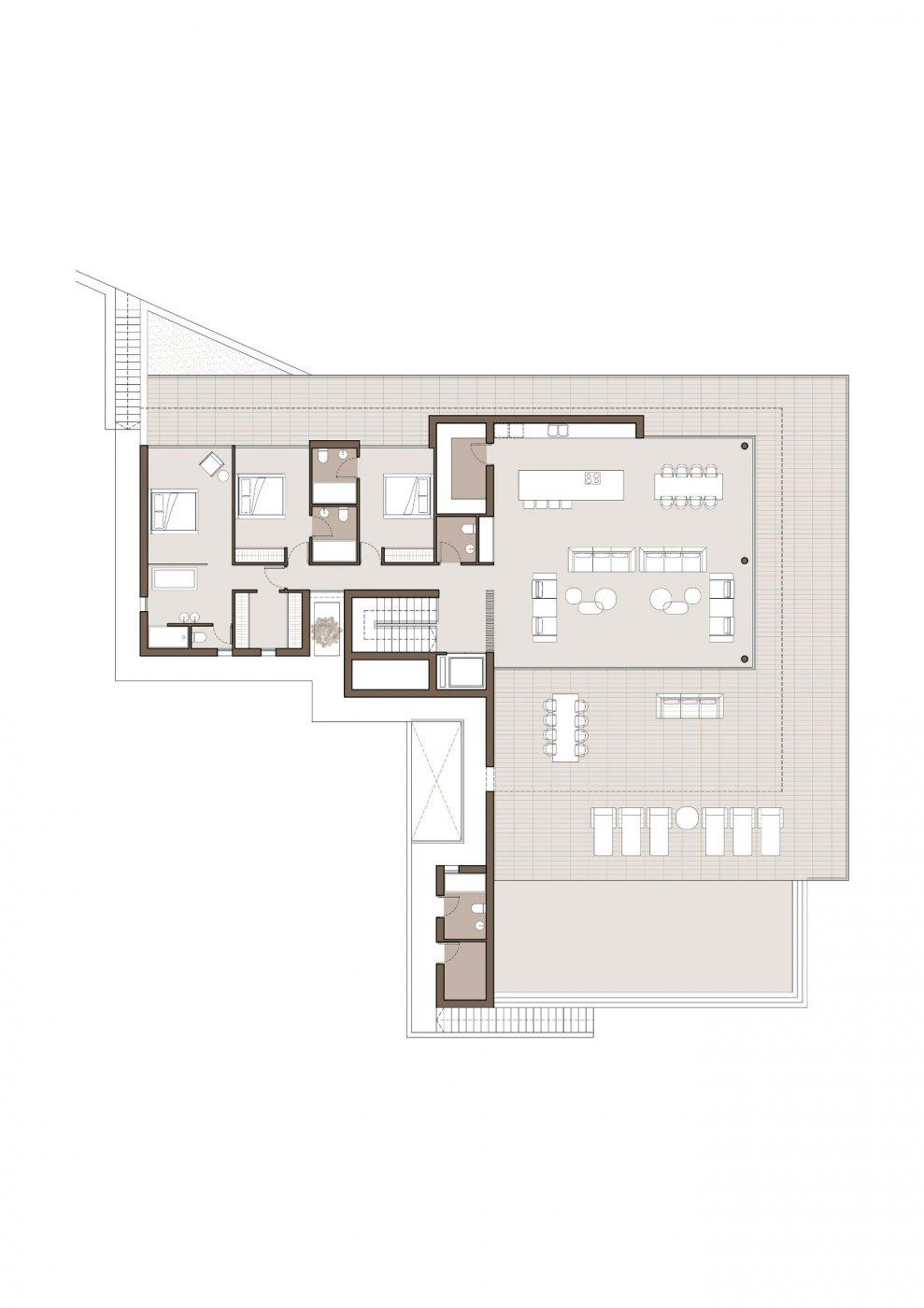 Moderne Villa zu verkaufen in Moraira mit Panoramablick und minimalistischer Architektur. Auf einem erhöhten Grundstück gelegen, verfügt sie über mehrere Schlafzimmer mit eigenem Bad, einen offenen Wohnbereich von über 90 m², einen Weinkeller, ein Fitnessstudio, eine Garage und geräumige Terrassen mit einer offenen Veranda. Hochwertige Ausstattungen im gesamten Haus in ruhiger Lage mit Blick auf das Tal.