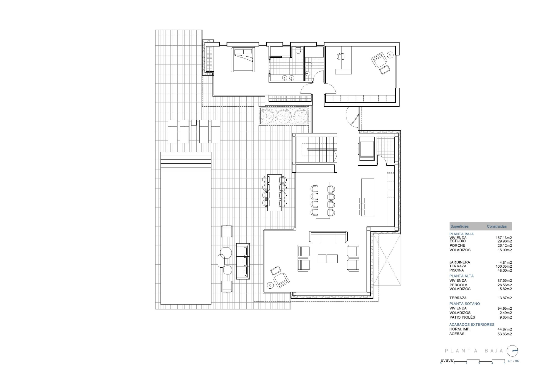 Moderne zweistöckige Villa mit einer gesamten Wohnfläche von 395,71 m². Das Haus erstreckt sich über zwei Etagen. Im Erdgeschoss befinden sich eine große offene Küche, ein WohnEssbereich, ein Hauswirtschaftsraum und ein Schlafzimmer. Die obere Etage umfasst mehrere geräumige Schlafzimmer mit Einbauschränken und Zugang zu einem Balkon mit Panoramablick.Zu den Außenanlagen gehören ein Swimmingpool mit Außendusche, Terrassen (sowohl überdacht als auch unüberdacht) sowie ein Balkon vom Hauptschlafzimmer. Die Immobilie ist mit einer Klimaanlage und Klimakontrolle ausgestattet. Ruhige Lage, ideal für ganzjähriges Wohnen oder als Ferienunterkunft.
