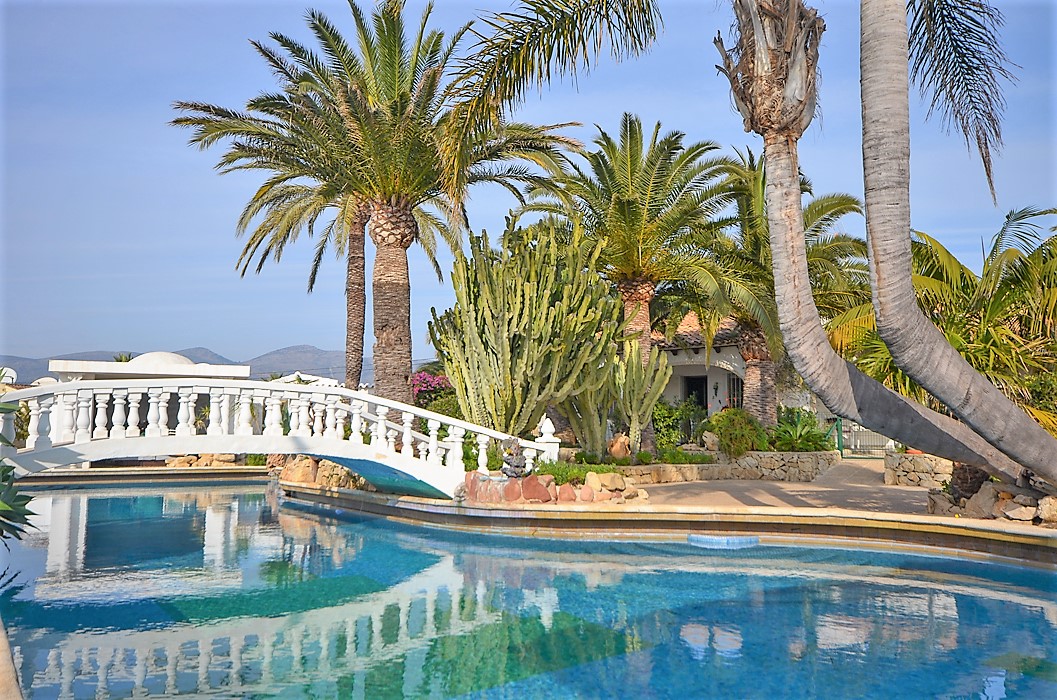In herrlicher Panoramalage mit Blick auf den Peñón erstreckt sich auf einem 5.580 m² Grundstück ein Gartenparadies, welches mit einer imposanten Villa (5 Zimmer) inkl. Einliegerwohnung (2 Zimmer), 6 Gästehäusern (je 3 Zimmer), einem Pool und einer üppigen und gepflegten Parkanlage bebaut ist. Die Parkanlage ist mit zahlreichen hohen Palmen, verschiedenartigen Blumen- und Kakteenarten bepflanzt und mit einem Fischteich, Wasserbrunnen, Wasserläufen und Grundwasserspeicher versehen.