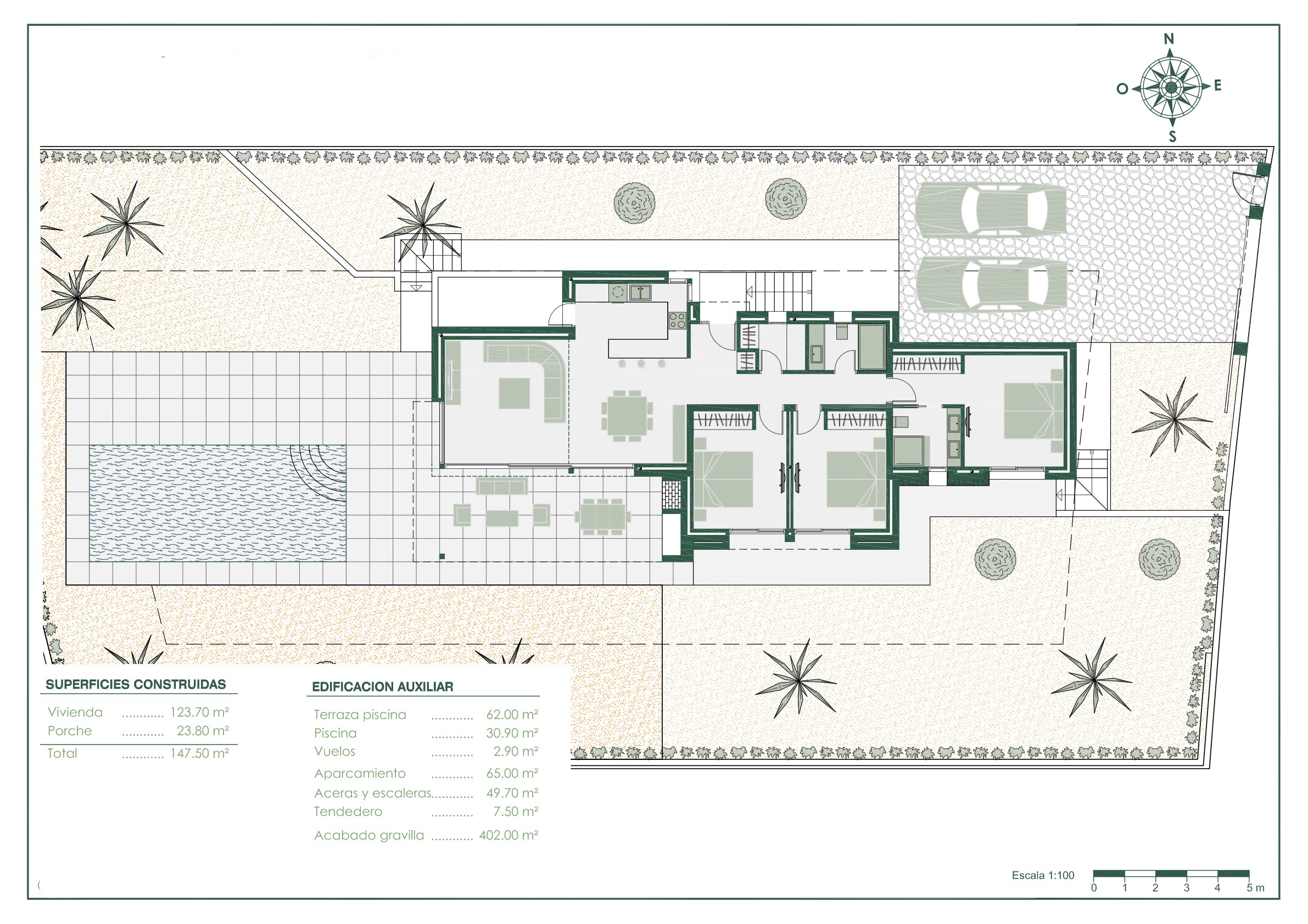 Einstöckiges Villenprojekt zu verkaufen in Benissa.Es handelt sich um eine von fünf Immobilien, die zu einem ResidencialKomplex an der Costa de Benissa gehören, umgeben von Natur und in strategischer Lage, ganz in der Nähe der Buchten Baladrar, Advocat und Fustera und nur 10 Minuten von Calpe und Moraira entfernt.Eine Anlage, in der jede Villa speziell für das Grundstück entworfen und angepasst wurde. Mit einem exklusiven Design und einem eigenen Charakter, ist es in ihre Umgebung integriert und entworfen, um das milde mediterrane Klima zu genießen.Sie sind alle auf einer Etage verteilt, was sie zu einem praktischen und funktionellen Haus macht. Vom Eingang aus gelangen Sie in die Halle, auf der rechten Seite haben Sie den täglichen Bereich, wo wir die Küche komplett offen zum Esszimmer und Wohnzimmer finden, von wo aus Sie direkt auf die Terrasse, die äußere Veranda und Grill zugreifen können. Auf der linken Seite haben wir Zugang zum Nachtbereich, der in 3 Schlafzimmer aufgeteilt ist. Das Hauptschlafzimmer verfügt über ein eigenes Bad und ein Ankleidezimmer und die beiden anderen Schlafzimmer teilen sich ein Bad. Auf dieser Seite des Hauses befindet sich auch ein Waschraum. Auf der Außenterrasse befindet sich der Pool mit einem Entspannungsbereich, um die Sonne oder ein Abendessen am Grill zu genießen. Außerdem gibt es einen Zugang zu den Gartenbereichen.Fragen Sie uns nach ergänzenden Informationen über Baumaterialien, Bauzeit, etc.Der angegebene Preis enthält keine Steuern und Kaufkosten / Das Angebot gilt vorbehaltlich von Irrtümern, Preisänderungen, Verfügbarkeit, Unterlassung und / oder Rücktritt vom Markt ohne Vorankündigung / Möbel und Inhalte nach individueller Vereinbarung und nicht nach den Fotos in der Präsentation