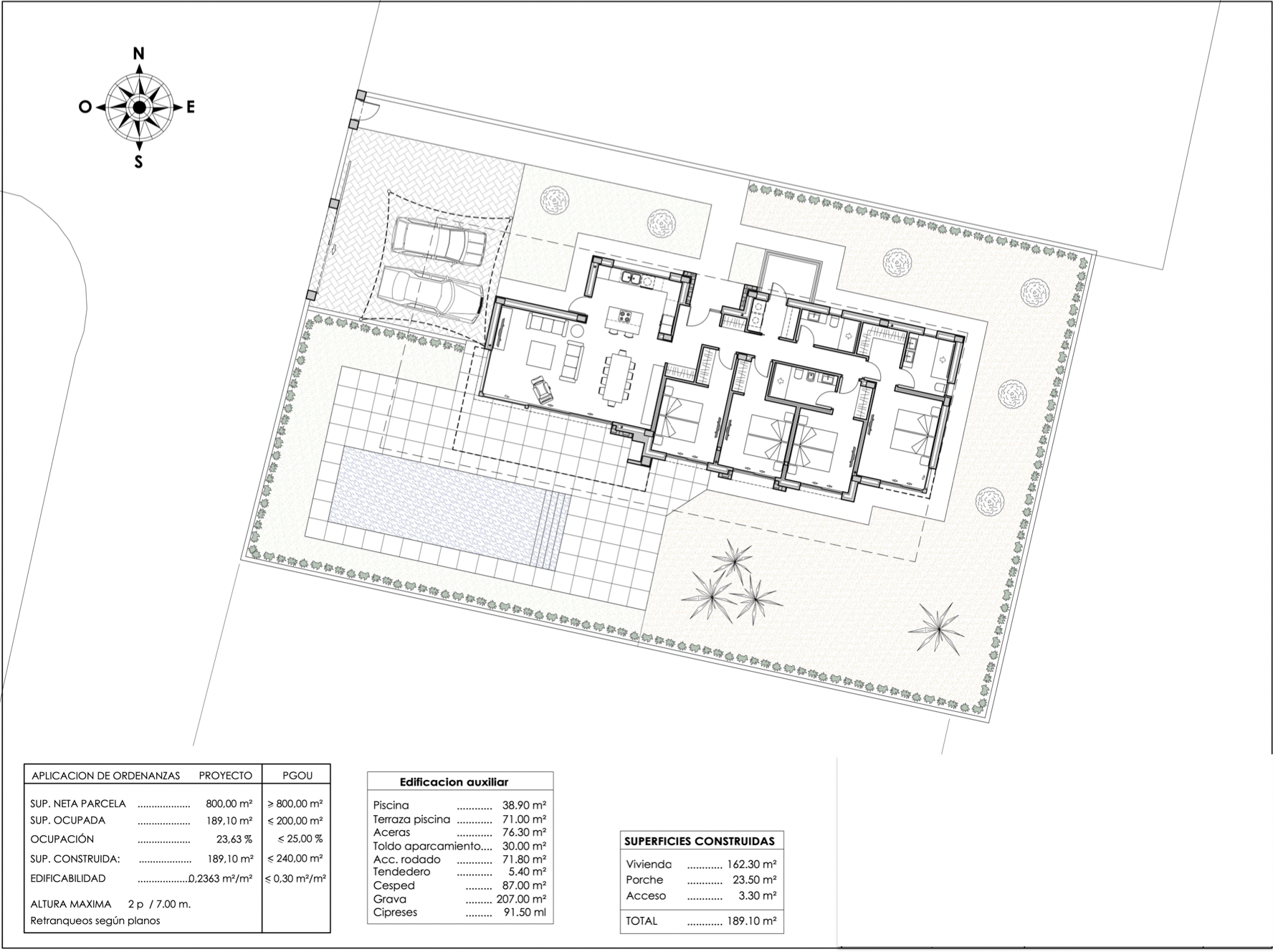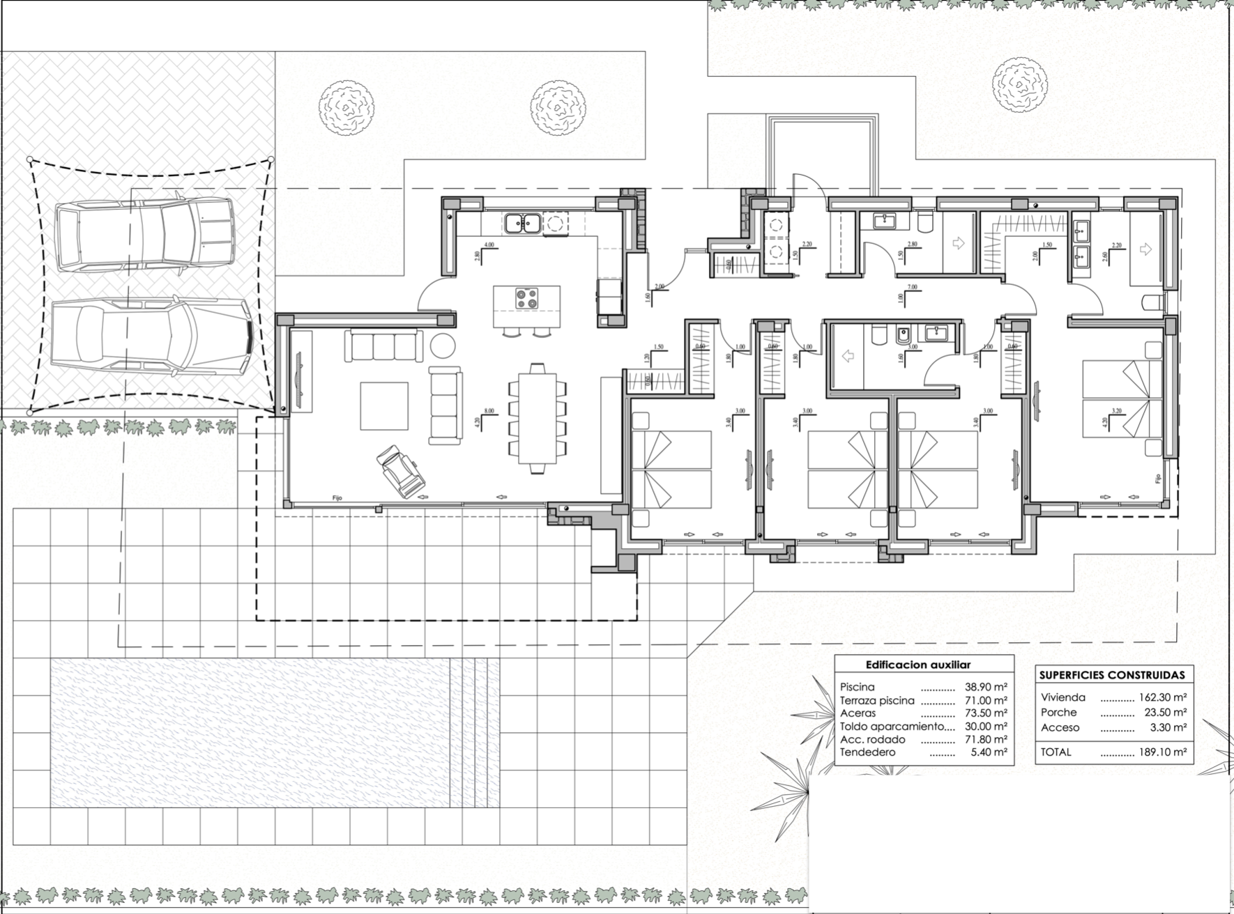 Modernes Villenprojekt zum Verkauf in CalpeDieses Projekt befindet sich in einer der Wohngegenden, die von allen Bewohnern von Calpe bevorzugt werden, da es in der Nähe des Stadtzentrums und der Strände liegt und gleichzeitig eine ruhige, aber sichere Gegend ist, da es sich am Rande des Stadtzentrums befindet.Die Immobilie wurde auf einer einzigen Etage geplant, was dieses Projekt praktisch und komfortabel macht.Das gesamte Grundstück ist eingezäunt und mit einer Zypressenhecke umgeben, was für Privatsphäre und eine angenehme Umgebung sorgt.Vom Haupteingang des Hauses gelangt man in eine Halle, von der aus man links in den Wohnbereich gelangt, der aus einem Wohnzimmer mit Esszimmer und einer offenen Küche mit Kochinsel besteht. Vom Wohnzimmer aus haben wir Zugang zum Außenbereich, wo wir eine überdachte Veranda mit Grill und eine große Terrasse mit Schwimmbad von 40m2 haben.Auf der rechten Seite des Hauses befindet sich der Schlafbereich mit 4 Schlafzimmern: das Hauptschlafzimmer mit Ankleideraum und Bad, ein weiteres Schlafzimmer mit eigenem Bad und zwei weitere Schlafzimmer, die sich ein Bad teilen. Es gibt auch einen Waschraum.Draußen gibt es einen Parkplatz mit einer Pergola in Form eines Segels für zwei Autos.Der angegebene Preis enthält keine Steuern und Kaufkosten / Das Angebot gilt vorbehaltlich von Irrtümern, Preisänderungen, Verfügbarkeit, Unterlassung und / oder Rücktritt vom Markt ohne Vorankündigung / Möbel und Inhalte nach individueller Vereinbarung und nicht nach den Fotos in der Präsentation
