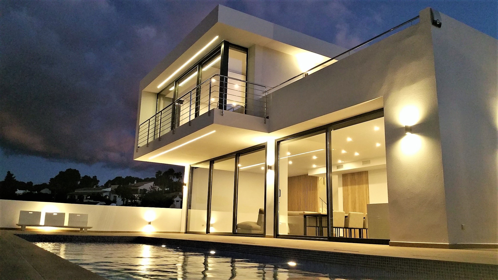 VillaProjekt mit Meerblick zu verkaufen in Moraira. Dieses Projekt ist auf einem schönen Meerblickgrundstück an einer ruhigen Sackgasse im unteren Teil von Benimeit geplant. Es liegt nur 1 km von den Annehmlichkeiten und 2,6 km von der schönen Stadt Moraira entfernt. Die Villa wird haben: 3 Schlafzimmer mit Einbauschränken und 2 Badezimmer (1 ensuite), Wohn/Esszimmer mit einer voll ausgestatteten Küche mit integrierten SIEMENSGeräten, Arbeitsflächen aus Stein einschließlich Insel im Erdgeschoss und einem großen Hauptschlafzimmer mit Ankleidezimmer, LuxusBadezimmer mit freistehender Badewanne und privater Terrasse im ersten Stock. Im Untergeschoss von 122m2 wird eine 40m2 große Garage eingerichtet.Die Fenster sind aus Aluminium TECHNAL mit Wärmebrückenunterbrechung und Innentüren aus weiß lackiertem Massivholz. Es wird ein Solarsystem für die Warmwassererzeugung, eine Klimaanlage mit Warm/Kaltkanal und eine Fußbodenheizung mit geringem Stromverbrauch geben. Zusätzlich erhalten Sie Musik im Wohnzimmer, eine Farbvideosprechanlage, ein elektrisches Tor, eine sicher gestaltete Eingangstür sowie einen Sicherheitsalarm und eine LEDBeleuchtung im ganzen Haus.Die Gartenarbeit wird mit einheimischen Pflanzen durchgeführt und natürlich ein 11×3 Meter langer Swimmingpool mit LEDLeuchten.