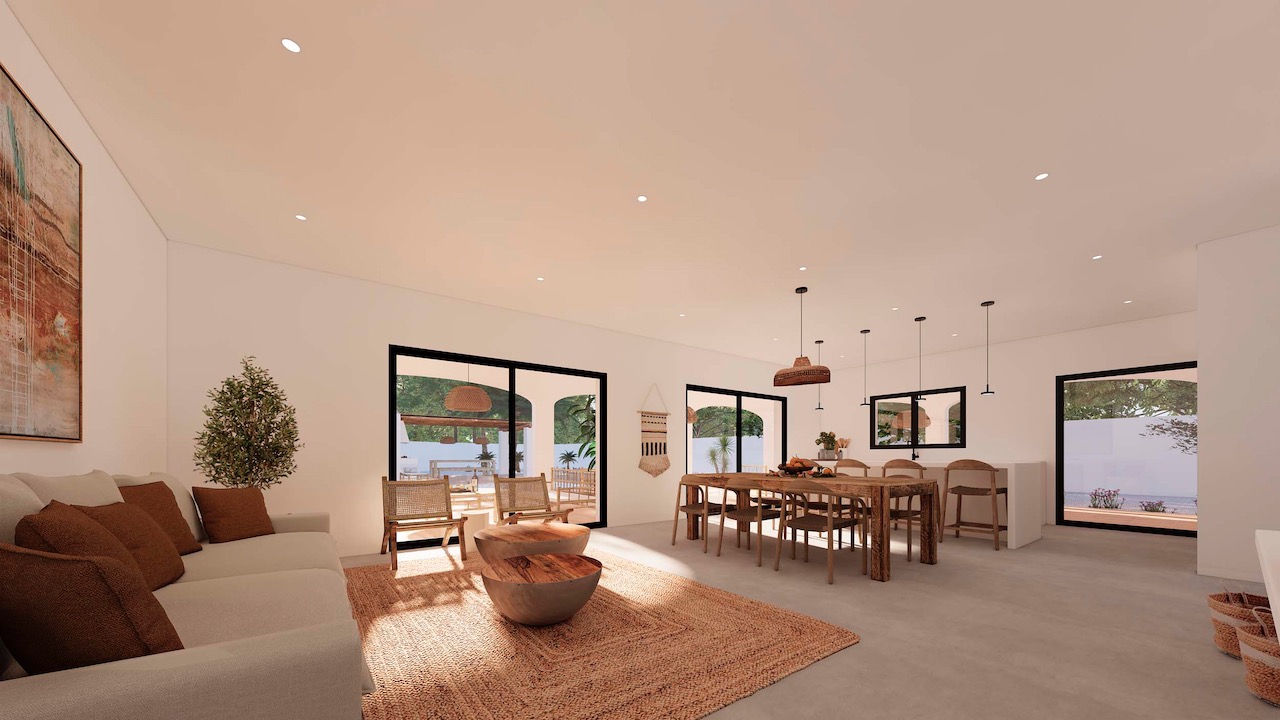 Die Villa besteht aus einem großen Wohn- und Essbereich mit einer voll ausgestatteten offenen Küche, vier Schlafzimmern, zwei davon mit einem eigenen Bad und ein weiteres individuelles Familienbad. Zusätzlich gibt es noch eine Waschküche und ein Gäste-WC.
