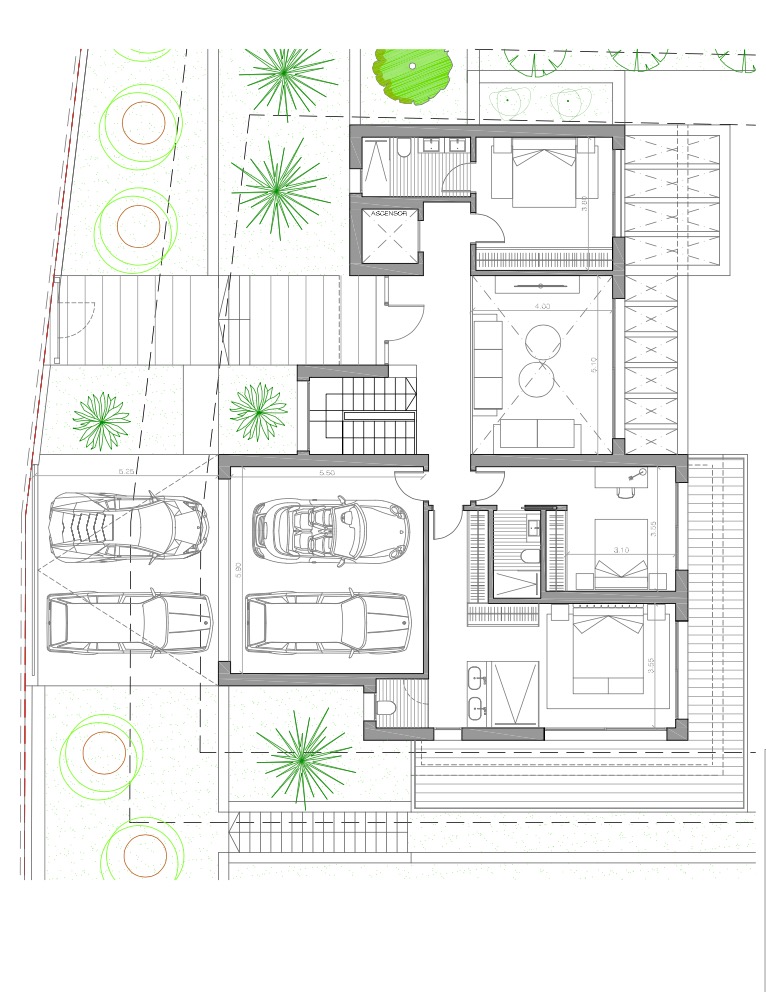Sie betreten die Villa über die obere Ebene, wo sich drei Doppelschlafzimmer, drei Bäder und ein Wohnzimmer befinden.