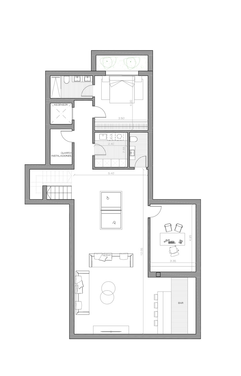 Ein Aufzug verbindet alle Ebenen.