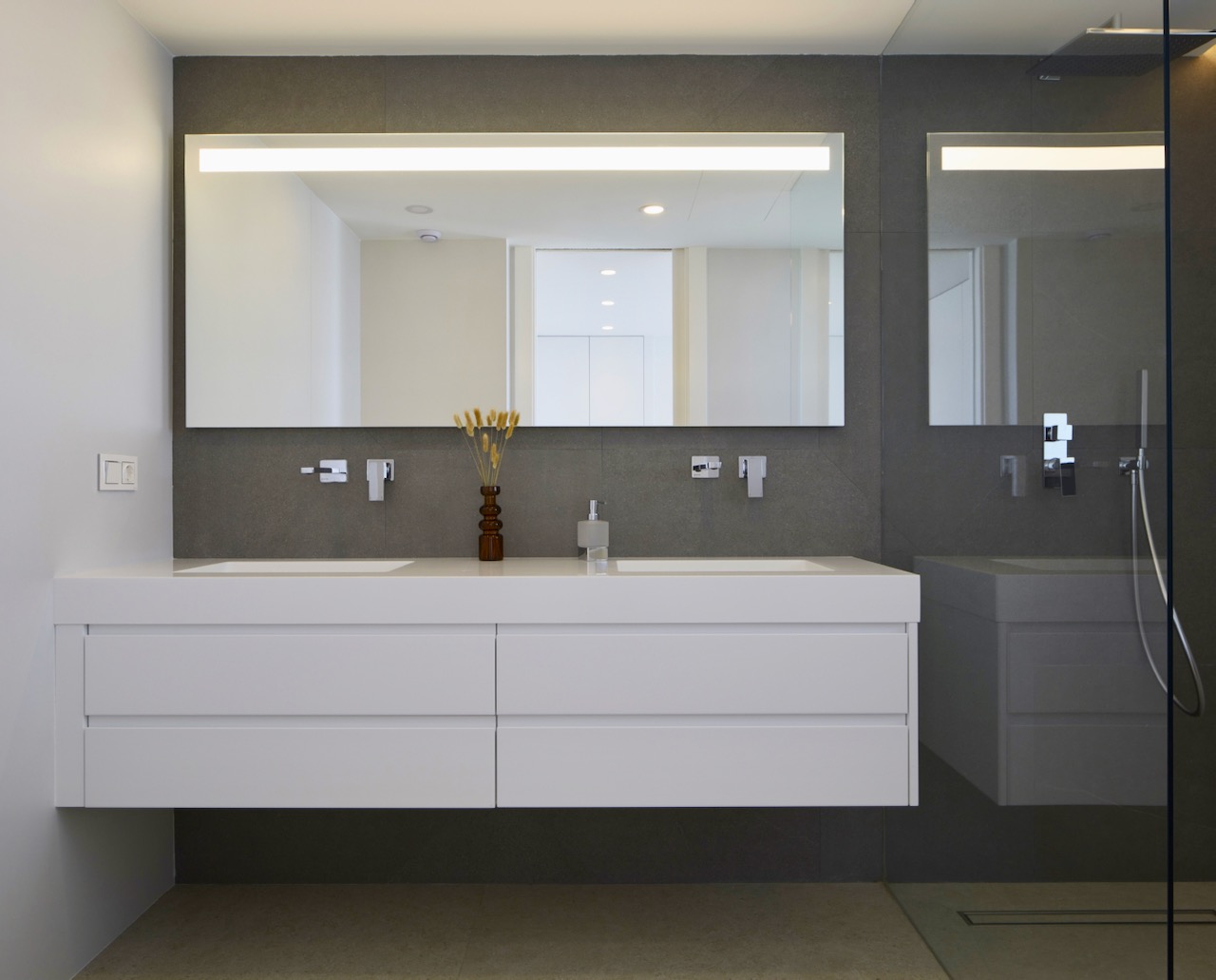 In der Sierra de Altea gelegen, mit einem unglaublichen Blick auf das Meer, ist hier ein wunderschönes neues Gebäude mit einem minimalistischen Stil und der besten Qualität und perfektem Design. Diese schöne Villa ist über drei Etagen verteilt. Auf der obersten Etage finden Sie eine Garage für zwei Autos und eine Eingangshalle, die uns den Zugang zum Rest des Hauses ermöglicht. In der mittleren Etage befinden sich drei der vier Schlafzimmer des Hauses. Es gibt zwei Hauptschlafzimmer und zwei weitere Schlafzimmer. Das Hauptschlafzimmer ist perfekt gelegen, um den herrlichen Meerblick zu genießen. Es hat eine eigene Terrasse, ein eigenes Bad und einen begehbaren Kleiderschrank. Die beiden anderen Schlafzimmer sind genauso schön! Jedes hat ein eigenes Bad, geräumige Kleiderschränke und eine Terrasse. Und im Flur, der zu den Schlafzimmern führt, gibt es zusätzliche Schränke!