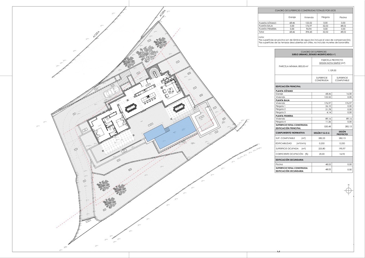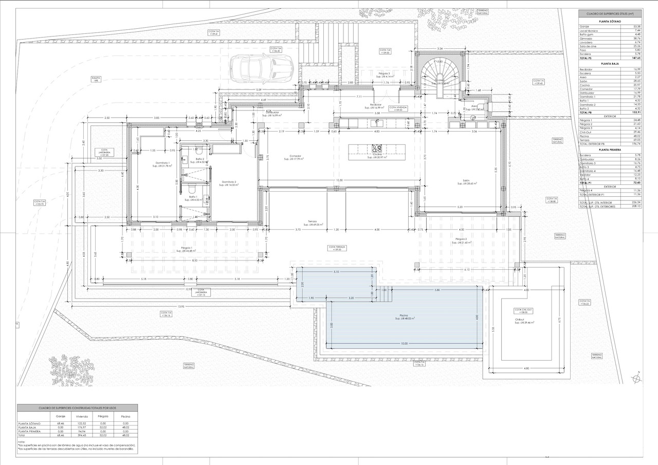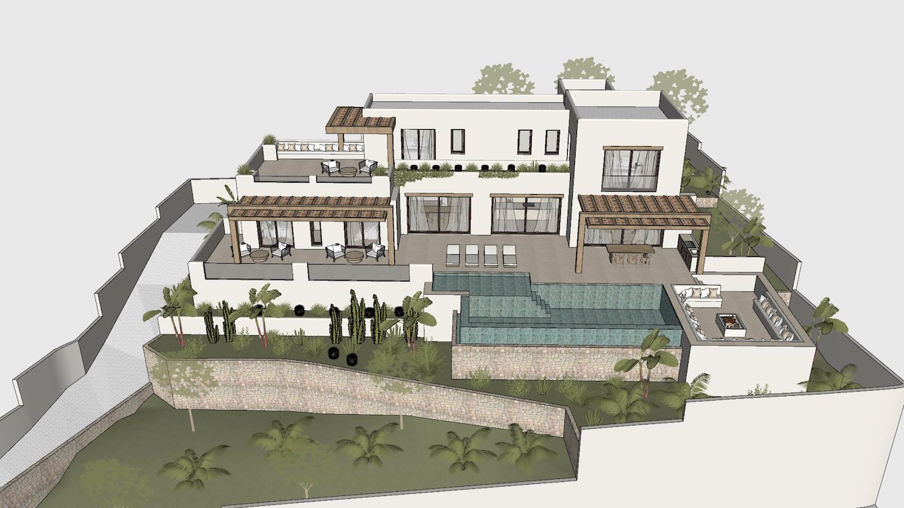 Auf 394 m² Wohnfläche auf einem 1.142 m² großen Grundstück bietet die Villa vier geräumige Schlafzimmer, jeweils mit luxuriösem Bad en suite, sowie zwei zusätzliche Gästetoiletten. Der offene Wohn-, Ess- und Küchenbereich ist hell, großzügig gestaltet und öffnet sich nahtlos zu einer großen nach Süden ausgerichteten Terrasse – teilweise überdacht für Mahlzeiten im Freien und Entspannung mit Meerblick.
