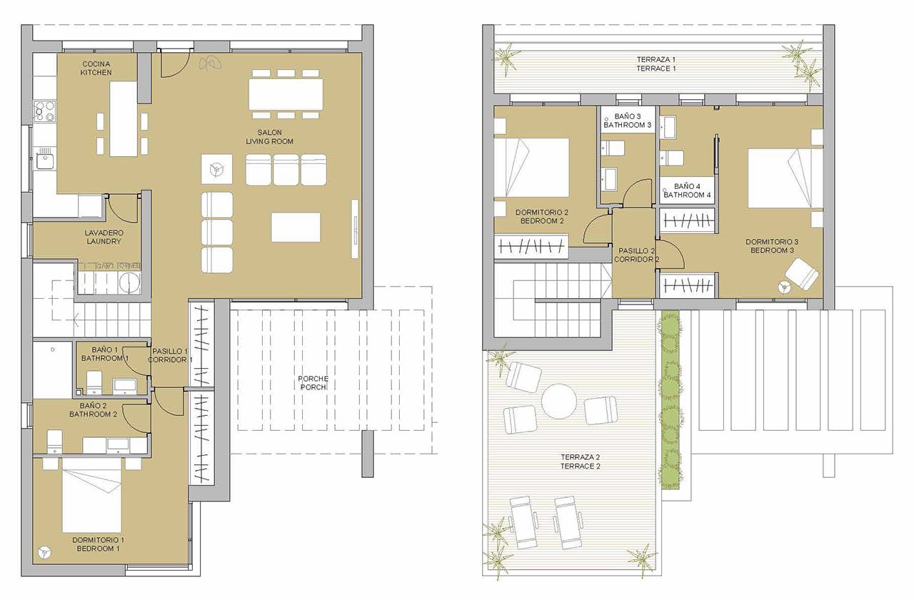 Diese exklusiven Villen verfügen über eine konstruierte Fläche von ca. 203 m² – 207 m² (inklusive Terrassen) mit