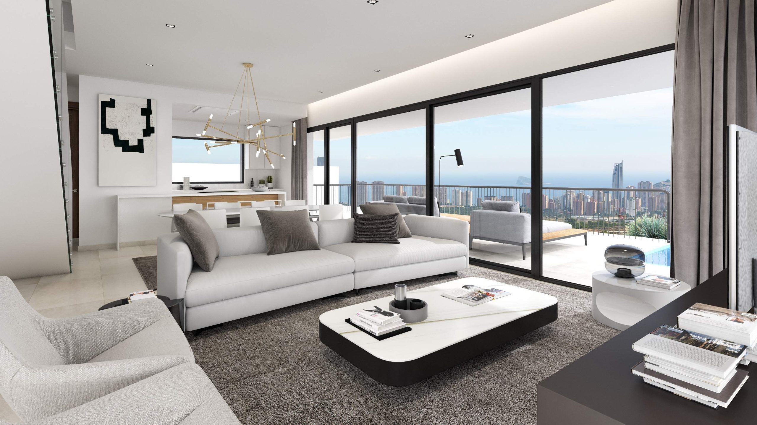SuperLuxusVillen mit einem minimalistischen Stil und erstaunliche weiten Blick auf das Meer und die Stadt Benidorm. Sie sind mit einem geräumigen Keller, Erdgeschoss und Obergeschoss rechteckige geometrische Design, exklusive Ausstattung mit hochwertigen Materialien. Große und durchscheinenden Räume genießen, die das Haus mit Licht und Offenheit zu bieten.Alle Häuser verfügen über eigene voll ausgestattete Küche, Wohnzimmer, Beitritt zum gestalteten Raum mit dem Pool und der Terrasse eingebaut. Jede Villa verfügt über 3 Schlafzimmer, 2 Bäder und große Räume für Terrassen und Außenbereiche für natürliches Licht können die Räume des Hauses Baden.