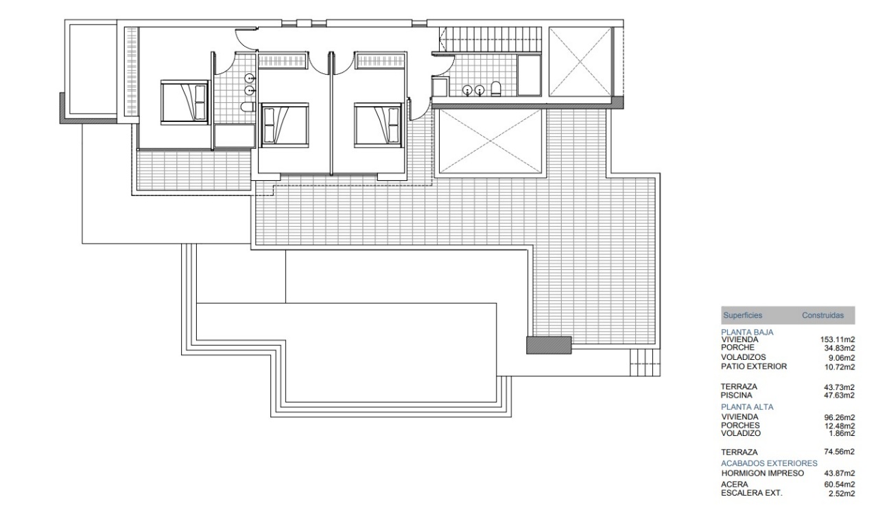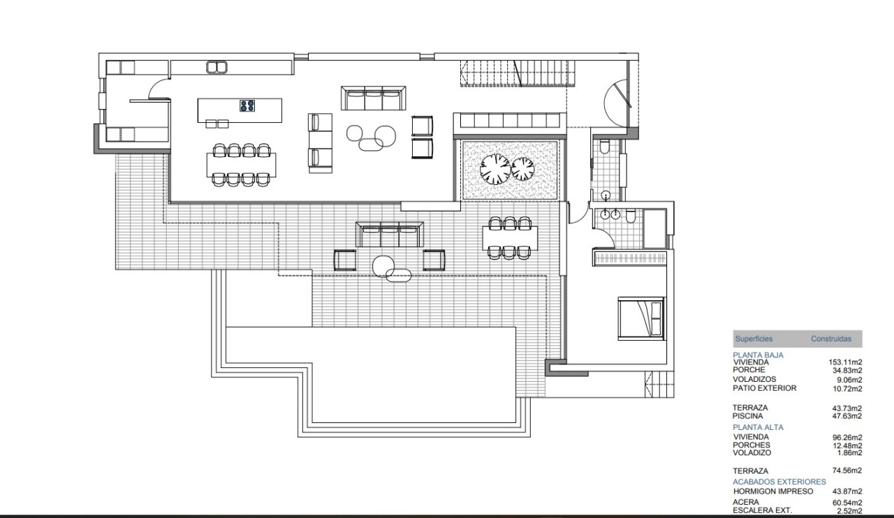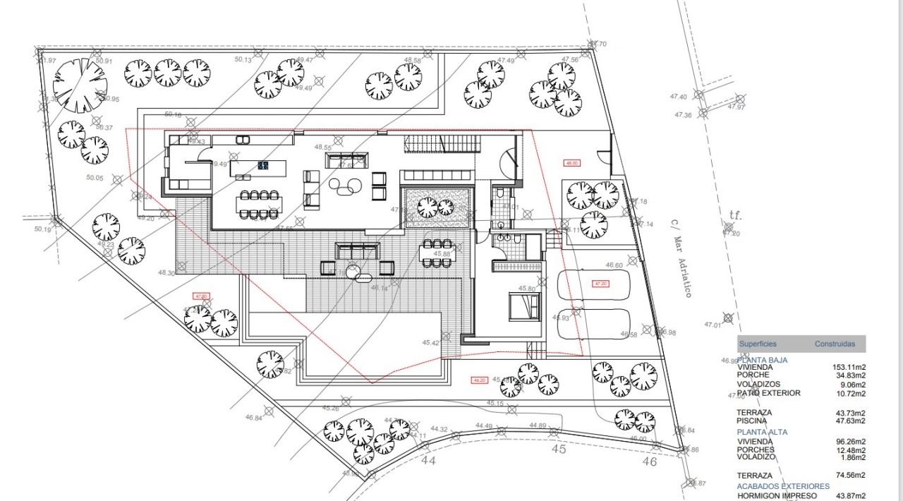 Diese brandneue Villa, die noch gebaut werden muss, befindet sich nur 5 Gehminuten von Moraira entfernt und wird auf 2 Etagen auf einem großen Grundstück verteilt. Gerade Linien und ein warmes Finish runden den Look ab.Im Obergeschoss wird es 3 Schlafzimmer und 2 Badezimmer sowie eine offene Terrasse geben.Im Erdgeschoss wird es ein Schlafzimmer mit eigenem Bad, ein GästeWC, eine voll ausgestattete offene Küche und ein Wohnzimmer geben.Die Villa befindet sich auf einem großen 801,90m2 großen Grundstück mit einer automatischen Eingangstür mit separatem Fußgängereingang und einer Gegensprechanlage. Auf der gleichen Ebene wie das Haus befindet sich das Schwimmbad mit Terrassen und Bepflanzung.