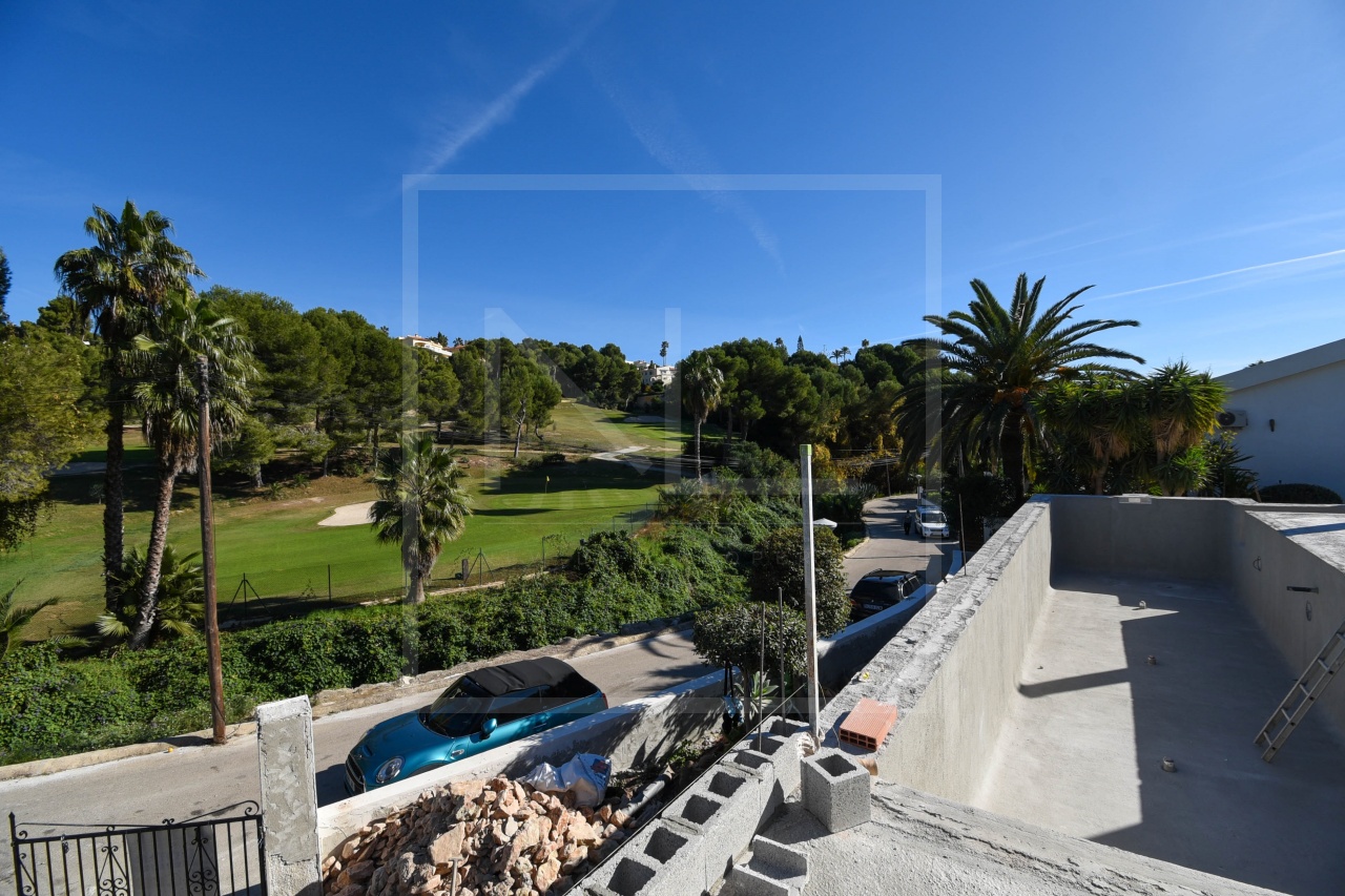 Diese Villa befindet sich in der Nähe des Golfclubs Ifach. Das Anwesen ist wie folgt angelegt. Im Erdgeschoss befindet sich eine 50m2 große Tiefgarage, eine Waschküche und ein 60m2 Mehrzweckraum, den Sie nach Ihren Wünschen füllen können. Für Weinliebhaber gibt es einen klimatisierten Weinkeller von ca. 25m2. Im Erdgeschoss befinden sich 3 Schlafzimmer, alle mit eigenem Bad und ein 4. Zimmer, das auch als Schlafzimmer oder Büro genutzt werden kann.Auf der gleichen Ebene finden Sie auch den Wohnbereich eine offene Küche (komplett ausgestattet mit MIELE Geräten) ist in direkter Verbindung mit der Außenküche. Das Wohnzimmer hat einen sehr gemütlichen Loungebereich. Der Außenbereich besteht aus einer großen Terrasse, von der ein Teil (50m2) überdacht ist, und dem Lförmigen Pool (13x3m). Als Extra ist das Anwesen mit einem schönen Solarium ausgestattet, das mit dem Aufzug erreichbar ist. Das Haus und der Garten sind perfekt fertiggestellt.Die Villa befindet sich auf einem großen 860m2 Grundstück und ist komplett eingezäunt, es hat ein automatisches Tor und Fußgängereingang. Die Außenschreinerei ist aus Aluminium und mit doppeltem Hochleistungsglas ausgestattet (vgl. aktuelle Normen). Das Abwasser wird in einer unterirdischen Kläranlage nach europäischen Vorschriften behandelt.