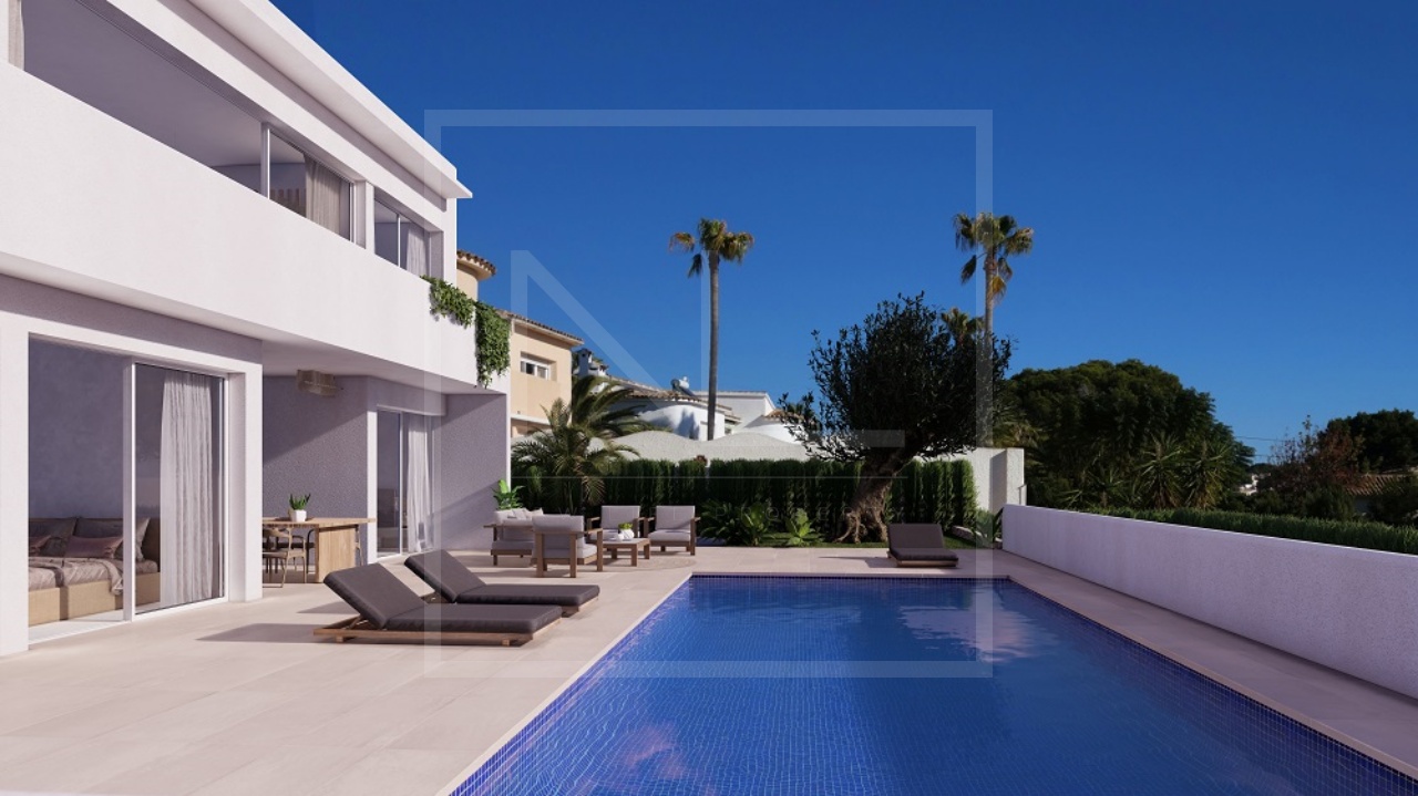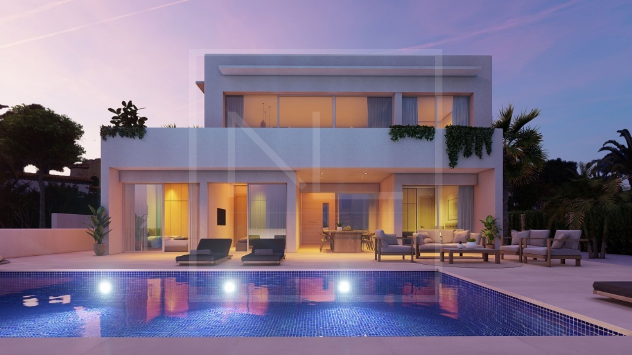Diese prächtige Luxusvilla mit herrlichem Blick auf das Meer und den Peñon d‘Ifach.Im Erdgeschoss öffnet sich eine Eingangshalle zu einem Bereich mit direktem Zugang zu einer überdachten Veranda, der großen Terrasse und dem Pool. 3 Schlafzimmer mit Einbauschränken, 2 Bäder und ein GästeWC. Eine Innentreppe führt in die obere Etage. Im Obergeschoss befinden sich das Wohn / Esszimmer mit einem geräumigen Wohnzimmer, einer modernen offenen Küche und einer Terrasse, ideal zum Frühstück oder Abendessen, mit Meerblick. Darüber hinaus gibt es das Hauptschlafzimmer mit eigenem Bad und Einbauschränken. Die Küche ist komplett ausgestattet mit modernen Energiespargeräten (Kühlschrank, Backofen, Mikrowelle, Kochinsel mit Induktionskochfeldern, Dunstabzugshaube und Geschirrspüler).Alle Wohn und Schlafzimmer sind mit Fußbodenheizung, Klimaanlage und TVAnschluss ausgestattet. Doppelt verglaste Türen und Fenster.Beleuchteter Pool von 9,5 x 4,5 Metern, integriert in eine großzügige Sonnenterrasse. Ein schöner Garten ergänzt diese schöne Villa. Mit einem elektrischen Eingangstor und Parkplatz für 2 Fahrzeuge. Separater Zugang für Wartungspersonal im unteren Teil des Grundstücks.Die Villa liegt in einer ruhigen Gegend, nur 1,5 km vom Meer und 1,9 km von einem Supermarkt entfernt. Golf, Tennis und PaddleTennis sind in der Nähe. Die Fertigstellung ist für Juni 2023 geplant.
