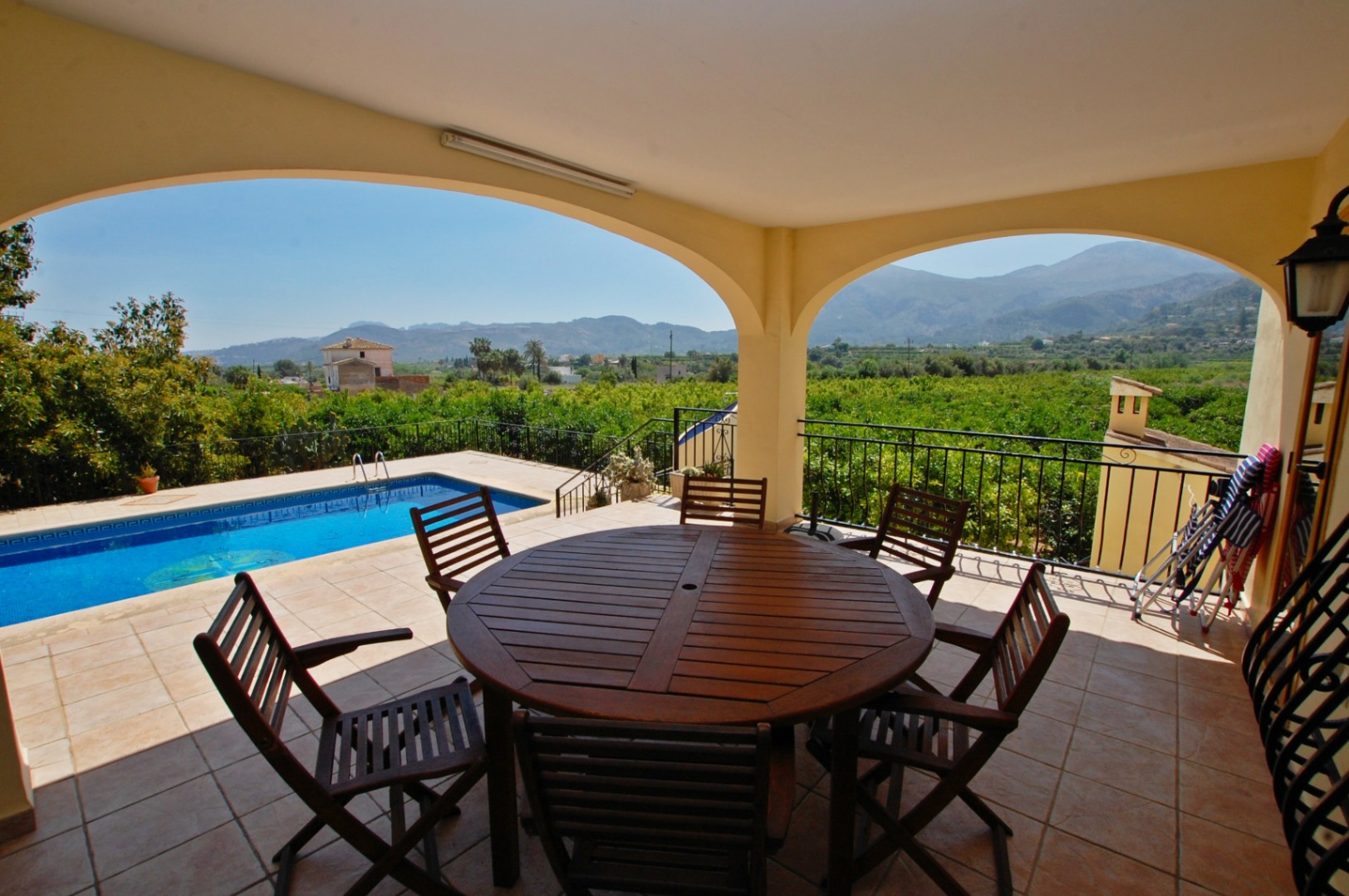 Können Sie sich vorstellen, auf dem Land mit Ruhe und Privatsphäre zu leben und gleichzeitig nur wenige Meter von allen Dienstleistungen entfernt Wenn ja, ist dies Ihr perfektes Zuhause!Rustikale Villa mit einer Grundstücksfläche von 4.300 m2, davon 1.100 m2 städtisch, mit einem Garten mit Pinien und Avocadobäumen, sehr pflegeleicht, und 3.200 m2 rustikal mit Orangenbäumen in voller Produktion.Das Haus ist im Erdgeschoss in ein großes WohnEsszimmer mit Zugang zu einer überdachten Terrasse mit spektakulärem Blick auf das Meer im Hintergrund, separater Küche, zwei Schlafzimmern und einem Badezimmer verteilt. Im ersten Stock befinden sich drei Schlafzimmer, ein großes Badezimmer, eine Waschküche und eine Terrasse mit Zugang vom Hauptschlafzimmer.Der Keller ist eine große Garage für mehrere Autos und kann auch als Abstellraum genutzt werden.Das Haus verfügt über einen großen 10 x 5 m großen Pool, die Installation von PhotovoltaikSonnenkollektoren und ein Geschäftslokal, das gemietet werden kann, um eine höhere Rendite zu erzielen.