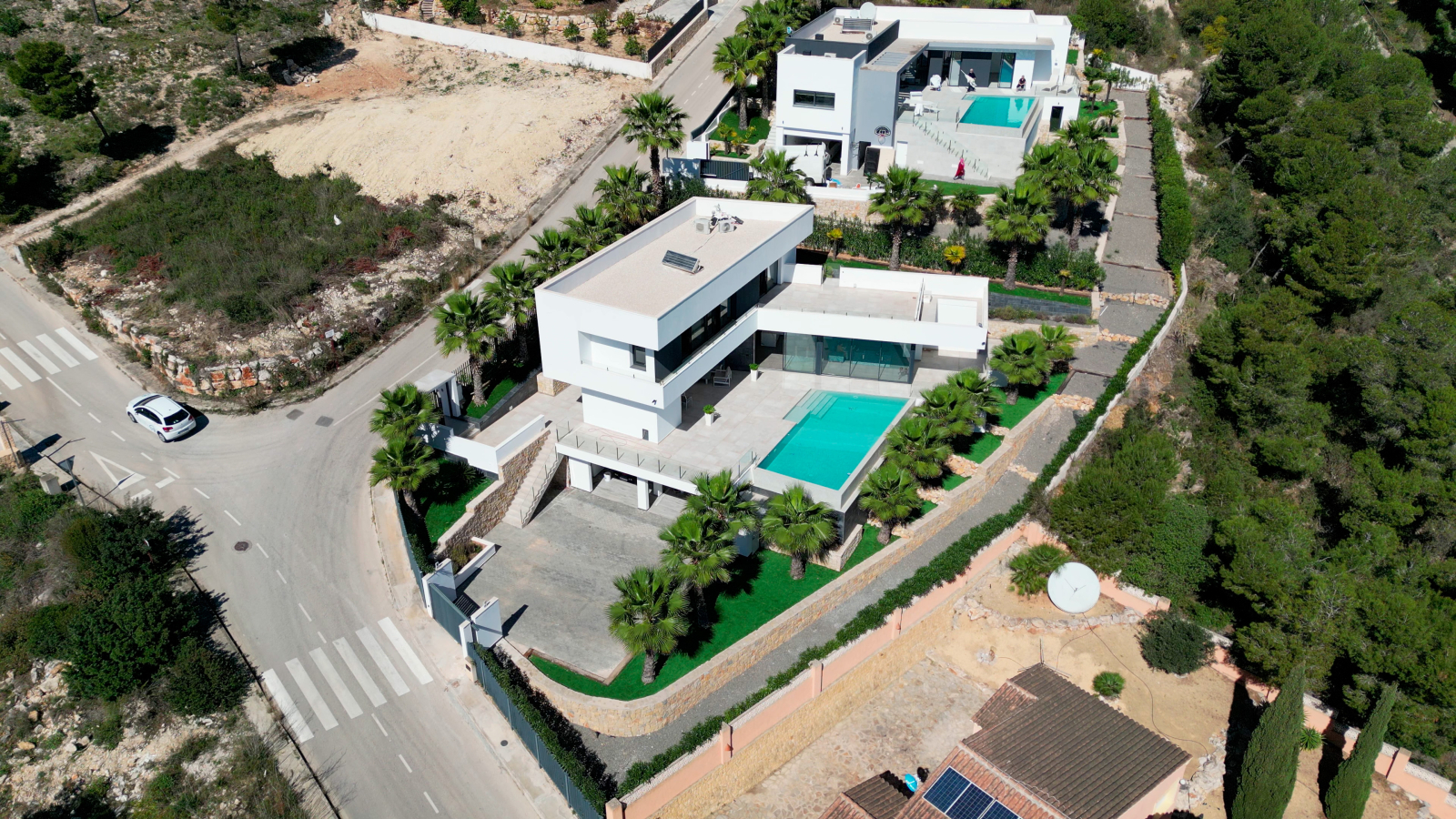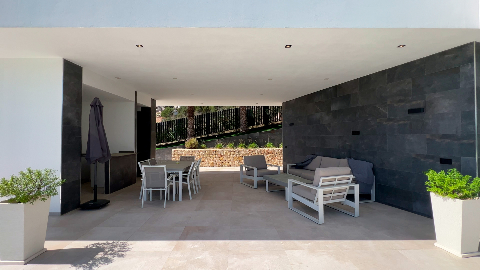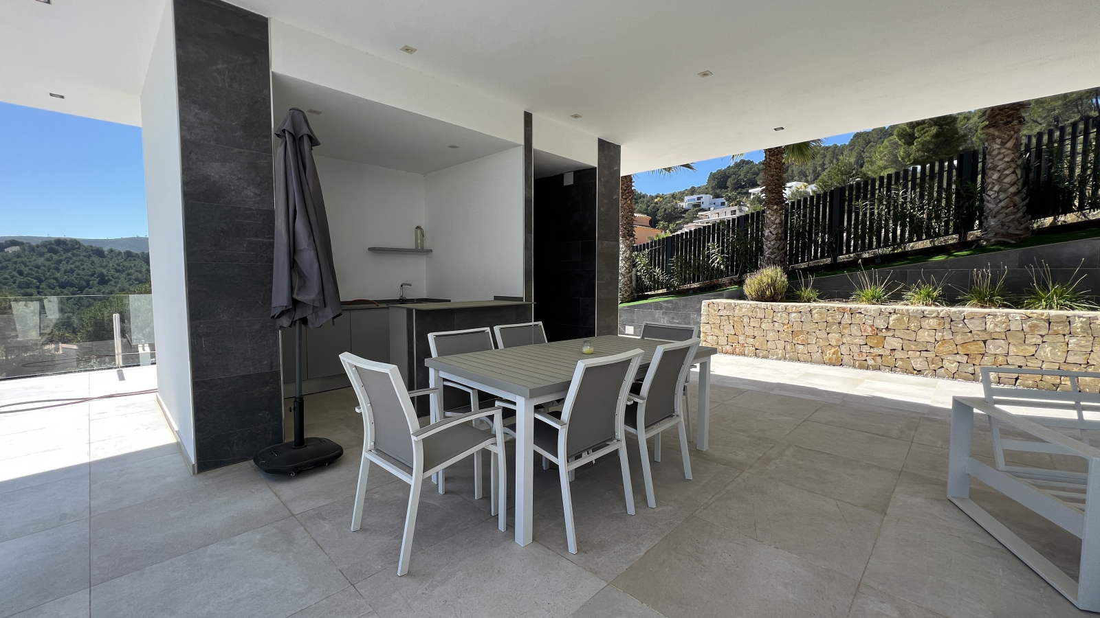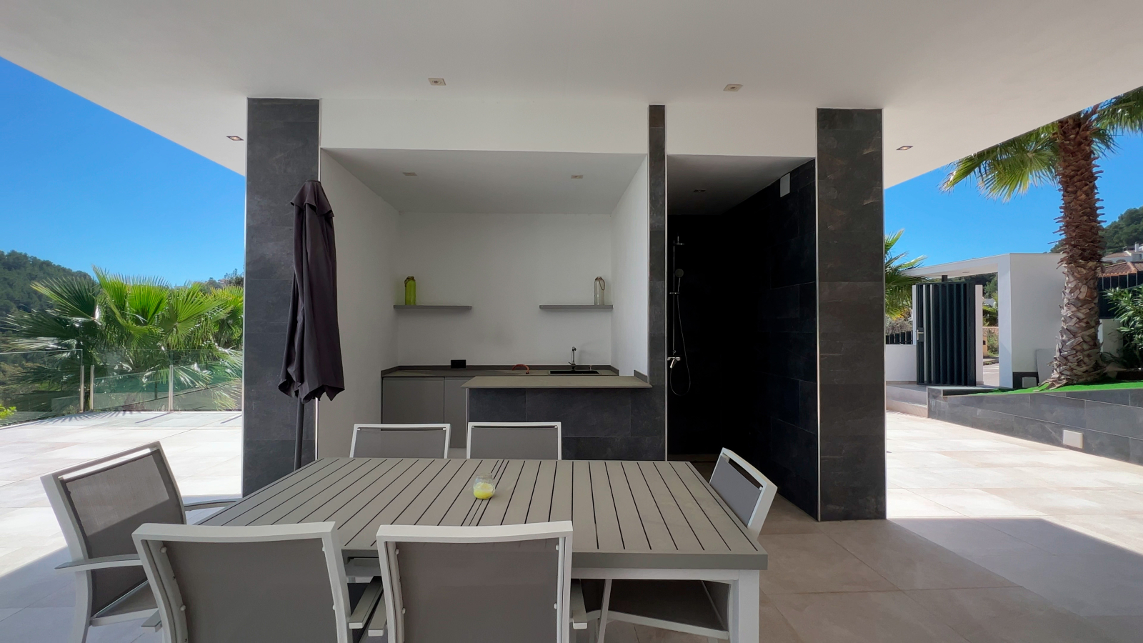Die Immobilie befindet sich auf einem ca. 1000 m² großen Grundstück und verfügt über eine bebaute Fläche von 373m2, einschließlich großzügiger offener und überdachten Terrassenbereiche.