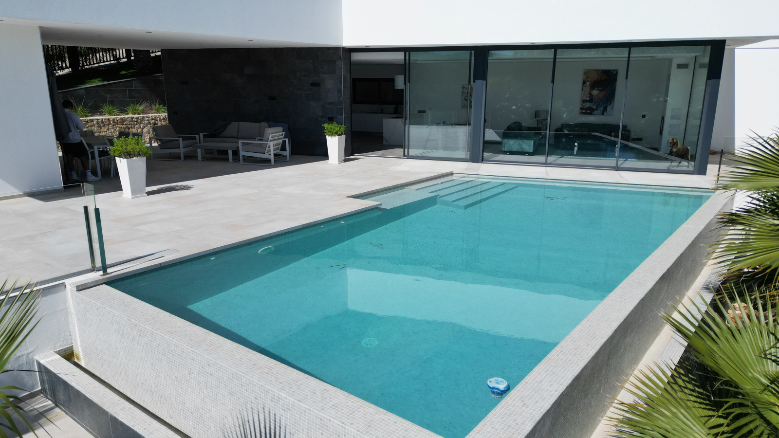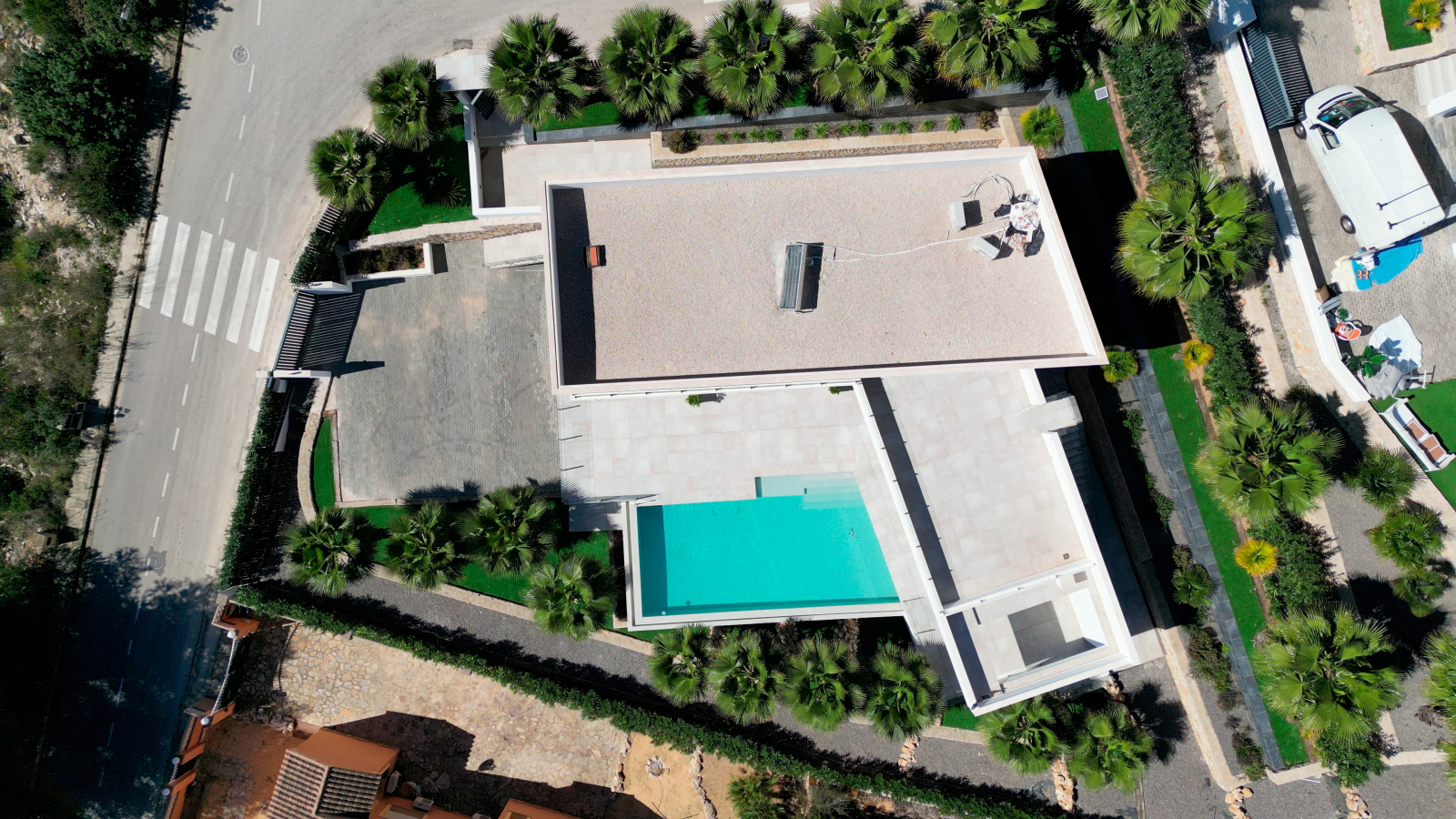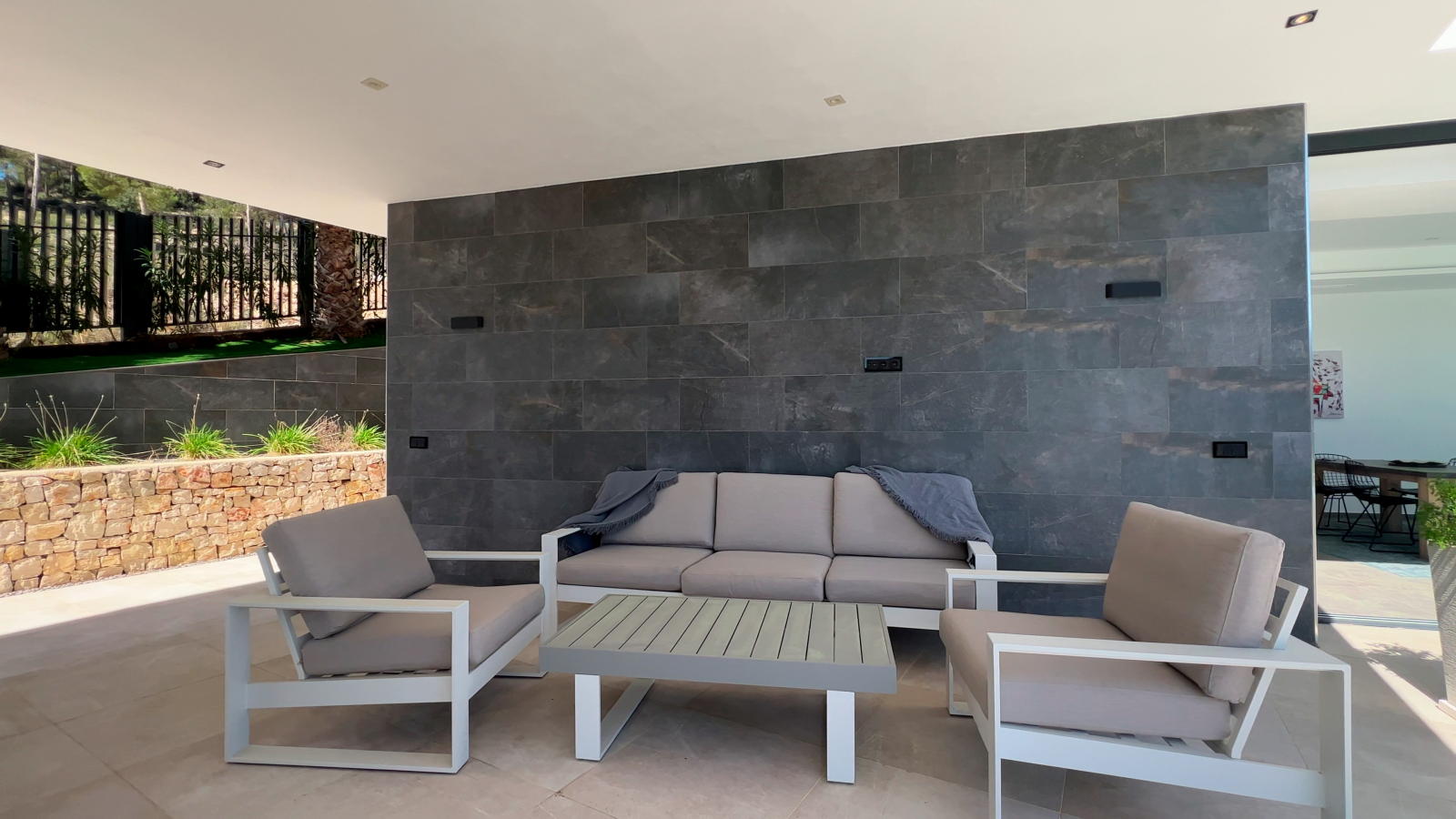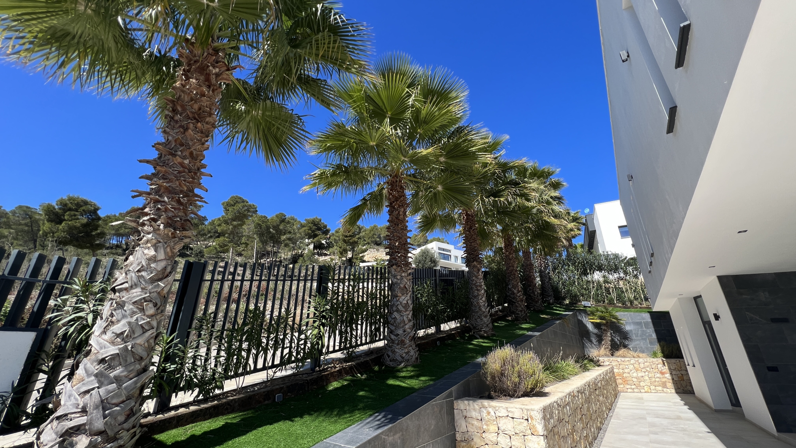Die Immobilie befindet sich auf einem ca. 1000 m² großen Grundstück und verfügt über eine bebaute Fläche von 373m2, einschließlich großzügiger offener und überdachten Terrassenbereiche.