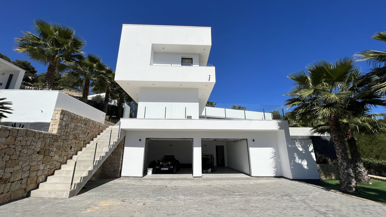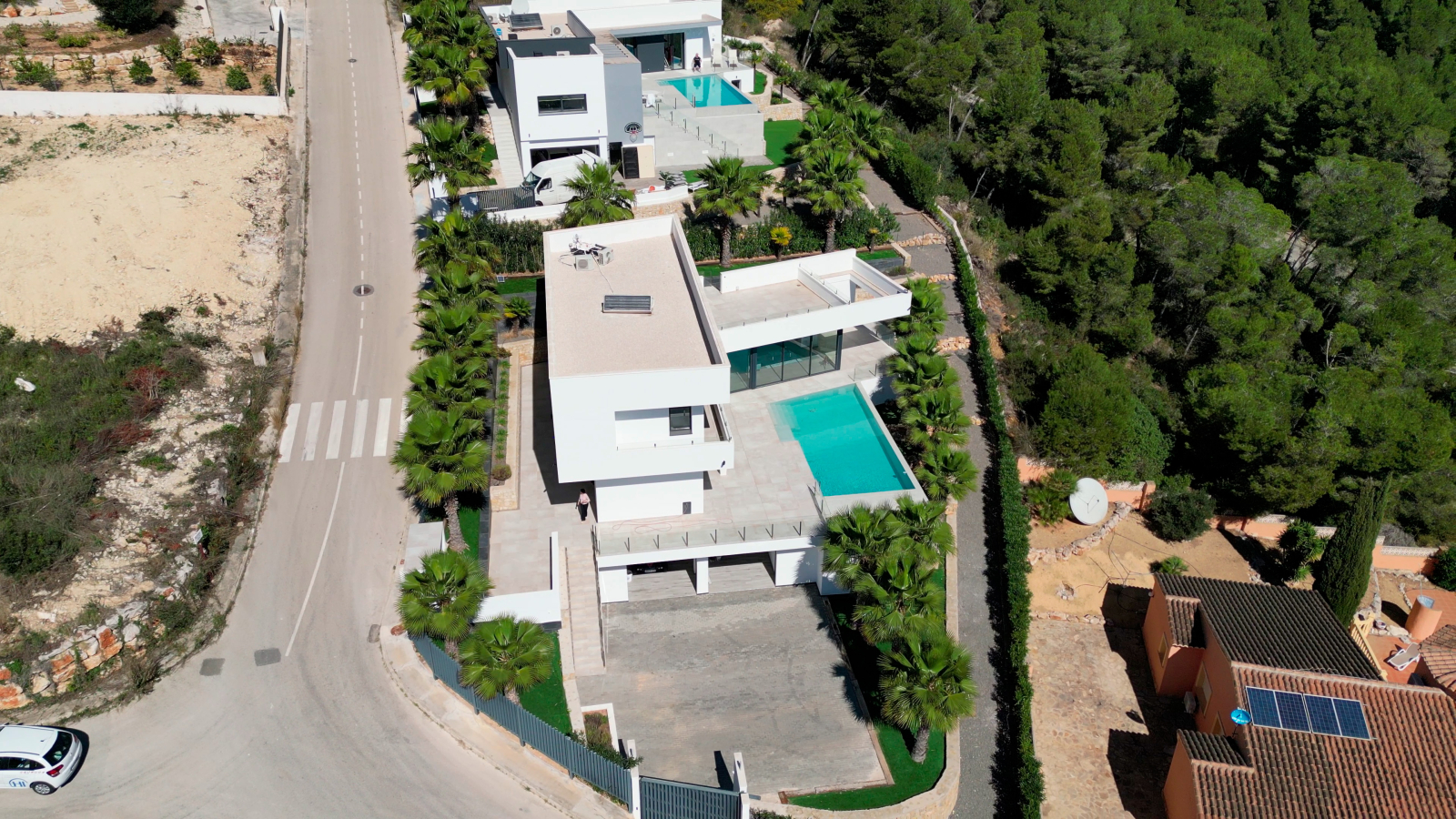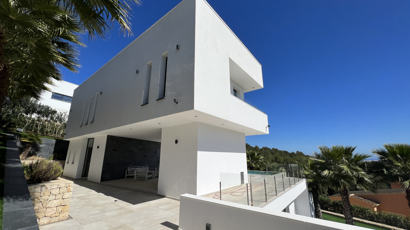 Dieses zeitgenössische Luxusanwesen ist harmonisch in den leichten Berghang integriert und bietet durch die exklusive Lage viel Ruhe und Privatsphäre. In nur 5 Minuten erreichen Sie mit dem Auto El Arenal und die Innenstadt von Javea. Alle Dienstleistungen sind dort zu finden. Die internationale und pulsierende Stadt bietet Ihnen eine sehr gute Infrastruktur mit allem was man im Alltag benötigt. Restaurants, Boutiquen, und eine traumhafte Natur werden Ihren Aufenthalt zum Erlebnis machen. Die Flughäfen von Alicante und Valencia, sind in ca. einer Autostunde über die Autobahn zu erreicht