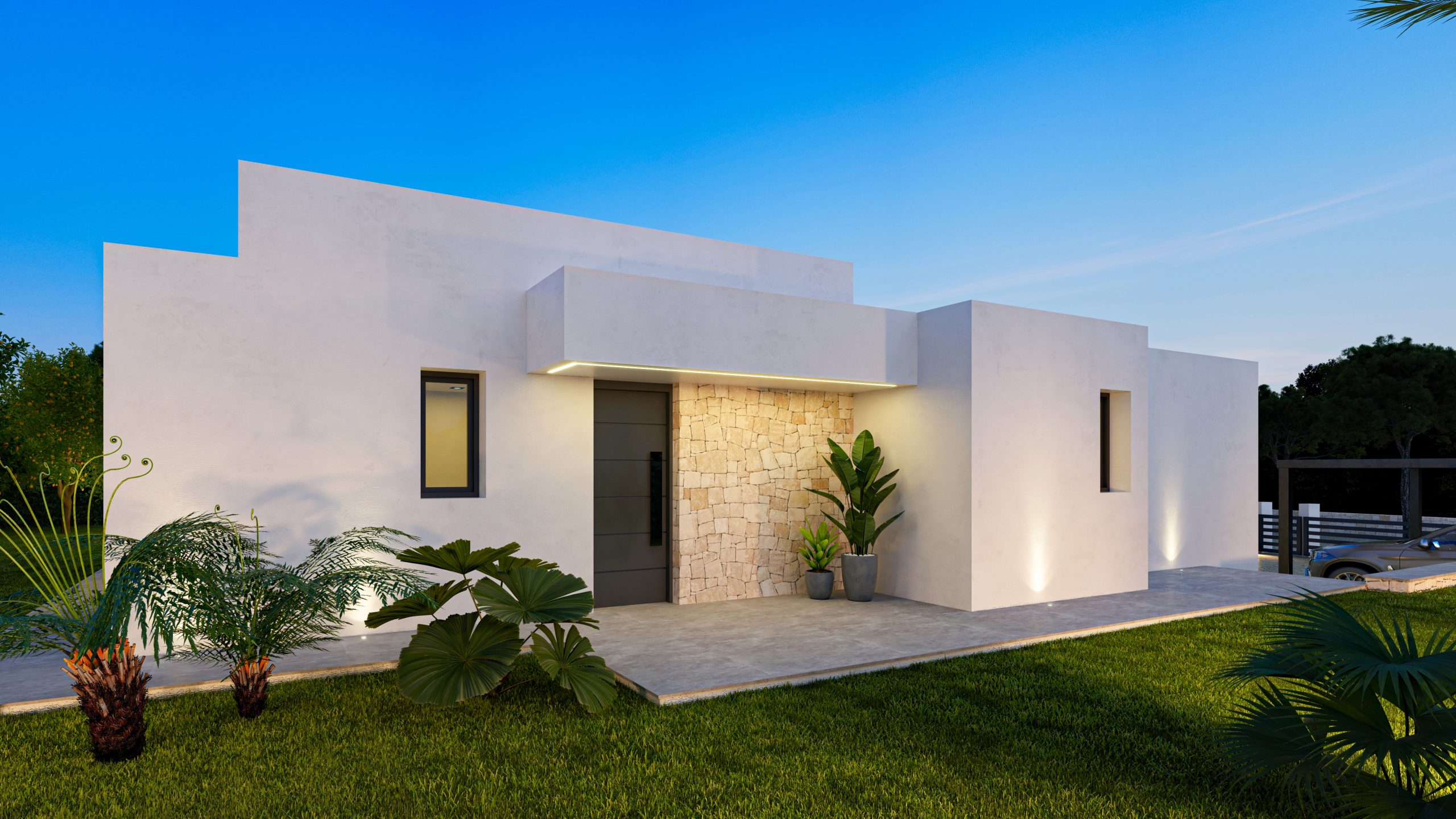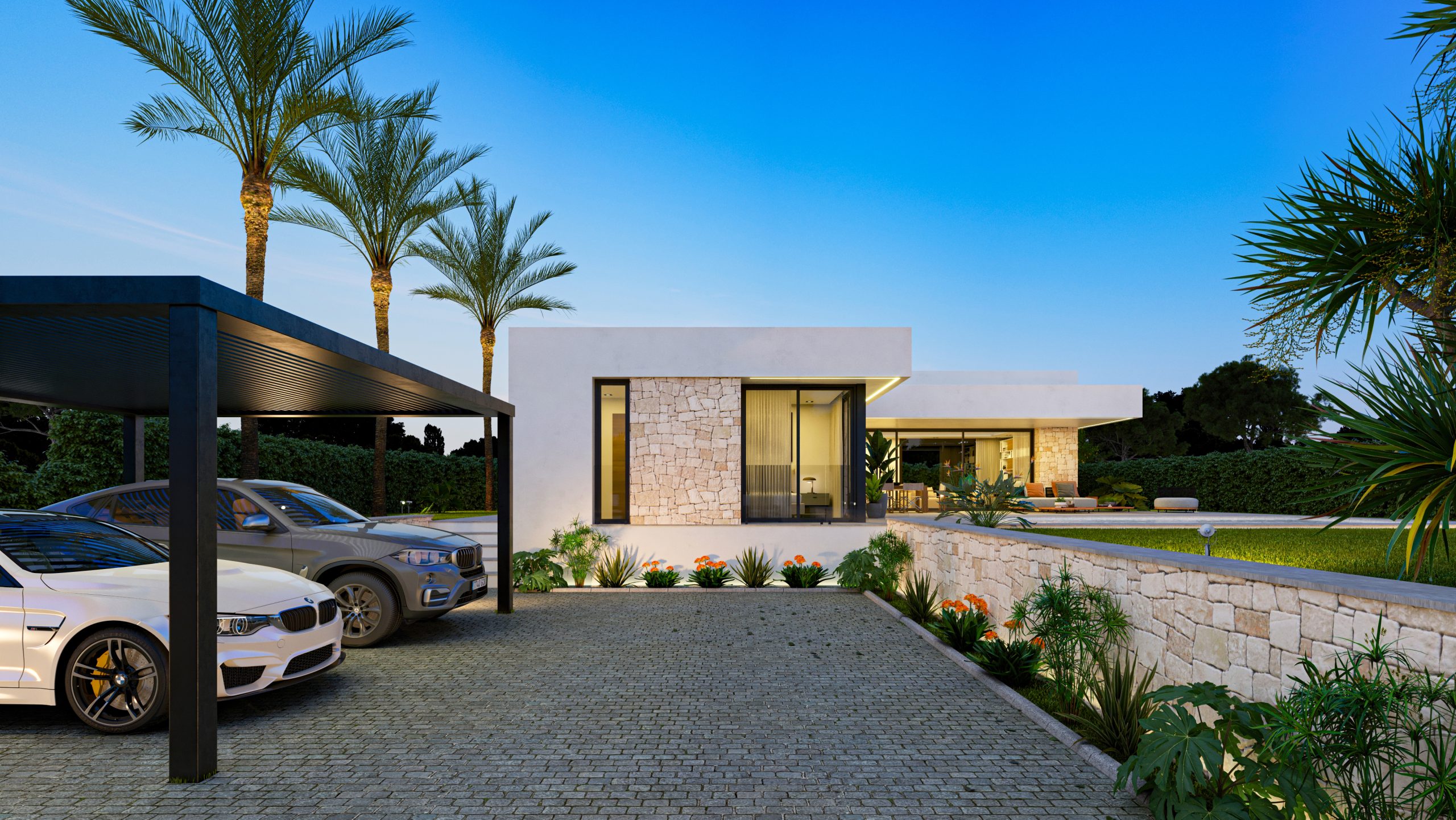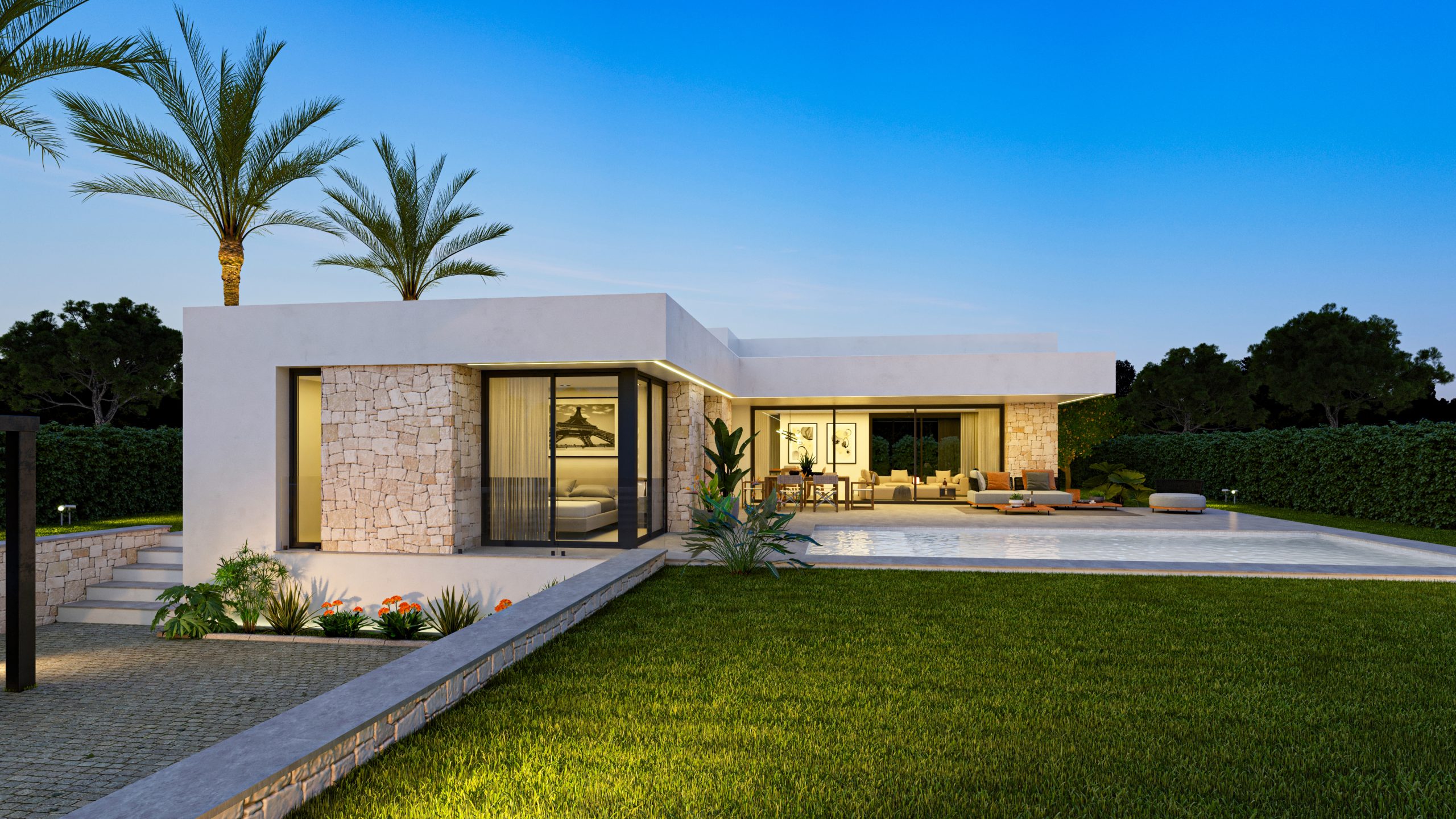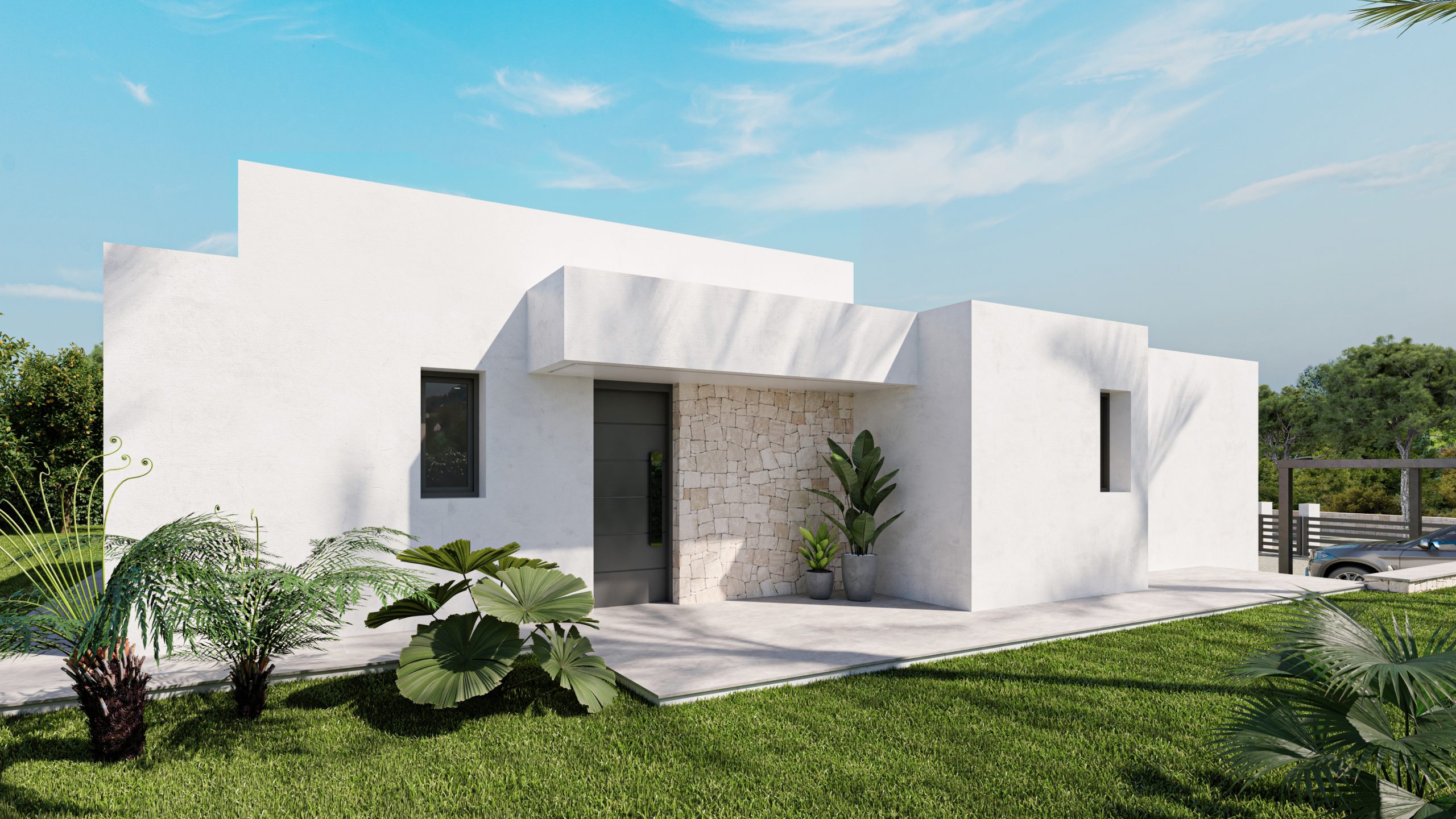 Villa Alcipe ist ein Haus im modernen Stil, das viel Licht hat und auf einer Etage organisiert ist, was das tägliche Leben erleichtert, da alle Räume perfekt miteinander verbunden sind. Der Haupteingang führt Sie direkt in ein geräumiges WohnEsszimmer, das sich durch große Fenster nach draußen öffnet und ein Gefühl von Geräumigkeit und Kontinuität mit der Terrasse und dem Pool vermittelt. Auf der rechten Seite des Wohnzimmers befindet sich eine offene Küche, die einen fließenden und sozialen Raum schafft, der sich perfekt für Unterhaltung oder Familienessen eignet.Die Schlafzimmer befinden sich strategisch günstig in einem privateren Flügel des Hauses, der Ruhe garantiert. Das Hauptschlafzimmer verfügt über einen eigenen Zugang zum Garten, ideal zum Entspannen am Ende des Tages. Die beiden weiteren Schlafzimmer öffnen sich ebenfalls nach draußen, so dass jederzeit natürliches Licht hereinfällt.Draußen bietet die Villa mehrere Bereiche, um die Sonne zu genießen, eine überdachte Terrasse für Momente der Entspannung und einen Swimmingpool, der sich harmonisch in das Design des Hauses einfügt. Die Gestaltung des Gartens ermöglicht es Ihnen, Grünflächen und schattige Plätze unter Palmen und Obstbäumen zu genießen und bietet ein perfektes Gleichgewicht zwischen dem Innenraum und der natürlichen Umgebung.Villa Alcipe verbindet modernes Design und Funktionalität in einer natürlichen Umgebung, die dazu gedacht ist, den mediterranen Lebensstil unter freiem Himmel zu genießen.