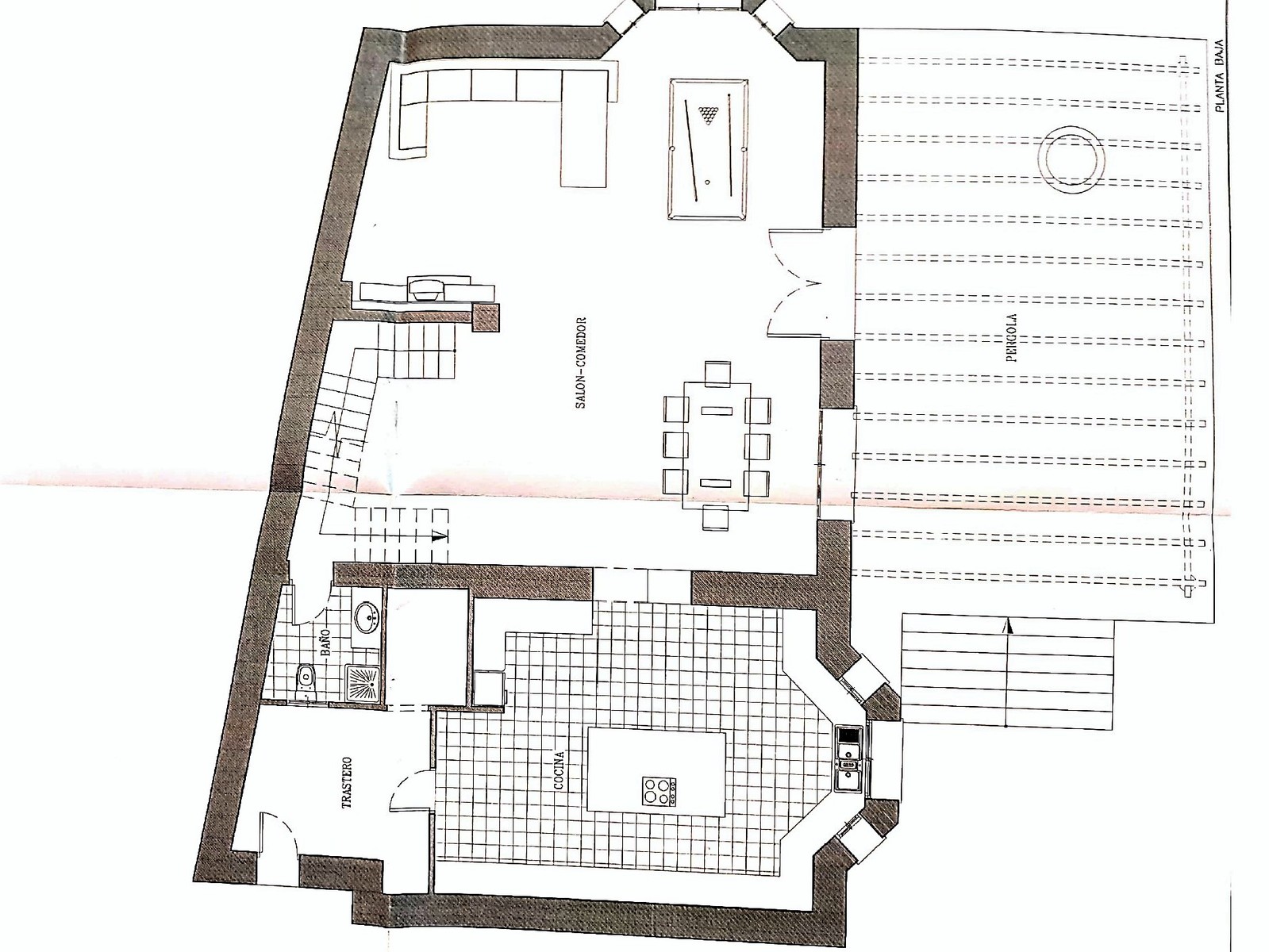Die Küche ist sehr geräumig und verfügt über eine große Kochinsel, die sich hervorragend eignet, um mit den Kindern süße Leckereien zuzubereiten oder um sich mit der Familie oder Freunden zu treffen. Es hat auch einen Erker mit einer Bank, Tisch und Stühlen für bis zu 10 Personen. Der ideale Ort für ein Treffen der ganzen Familie. Direkt neben der Küche, gut getarnt, befinden sich die große Speisekammer, die Waschküche und der Bügelbereich mit direktem Zugang zur hinteren Terrasse. Auf dieser Etage gibt es ein komplettes Badezimmer mit Regendusche.
